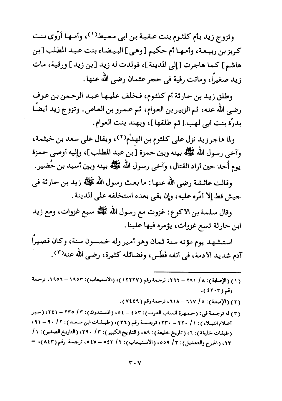 [ (1) ] (الإصابة) : 8/ 291- 292، ترجمة رقم (12227) ، (الاستيعاب) : 1953- 1956، ترجمة رقم (4203) .