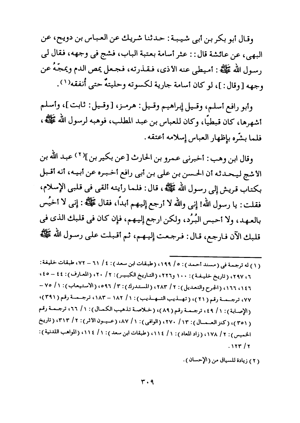 6، 297، (تاريخ خليفة) : 100 و 226، (التاريخ الكبير) : 2/ 20، (المعارف) : 44- 45، 146، 166، (الجرح والتعديل) : 2/ 283، (المستدرك) : 3/ 596، (الاستيعاب) : 1/ 75- 77، ترجمة رقم (21) ، (تهذيب التهذيب) : 1/ 182- 183، ترجمة رقم (391) ، (الإصابة) : 1/ 49، ترجمة رقم (89) ، (خلاصة تذهيب الكمال) : 1/ 66، ترجمة رقم (351) ، (كنز العمال) : 13/ 270، (الوافي) : 1/ 87، (عيون الأثر) : 2/ 313، (تاريخ الخميس) : 2/ 178، (زاد المعاد) : 1/ 114، (طبقات ابن سعد) : 1/ 114، (المواهب اللدنية) :