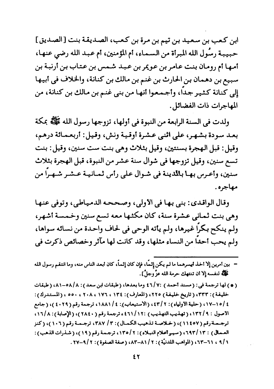 (*) لها ترجمة في: (مسند أحمد) : 7/ 46 وما بعدها، (طبقات ابن سعد) 8/ 58- 81، (طبقات خليفة) : 333، (تاريخ خليفة) 225، (المعارف) : 134، 176، 208، 550، (المستدرك) :