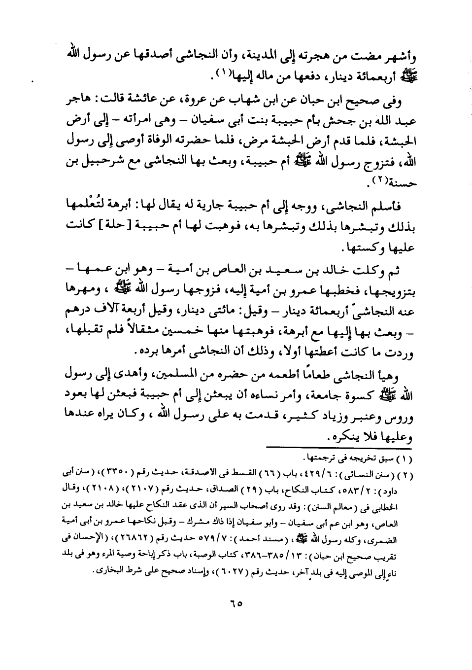 [ (2) ] (سنن النسائي) : 6/ 429، باب (66) القسط في الأصدقة، حديث رقم (3350) ، (سنن أبى داود) : 2/ 583، كتاب النكاح، باب (29) الصداق، حديث رقم (2107) ، (2108) ، وقال الخطابي في (معالم السنن) : وقد روى أصحاب السير أن الّذي عقد النكاح عليها خالد بن سعيد بن العاص، وهو ابن عم أبى سفيان- وأبو سفيان إذا ذاك مشرك- وقبل نكاحها عمرو بن أبى أمية الضمريّ، وكله رسول اللَّه صلّى اللَّه عليه وسلم، (مسند أحمد) : 7/ 579 حديث رقم (26862) ، (الإحسان في تقريب صحيح ابن حبان) : 13/ 385- 386، كتاب الوصبة، باب ذكر إباحة وصية المرء وهو في بلد ناء إلى الموصى إليه في بلد آخر، حديث رقم (6027) ، وإسناد صحيح على شرط البخاري.
