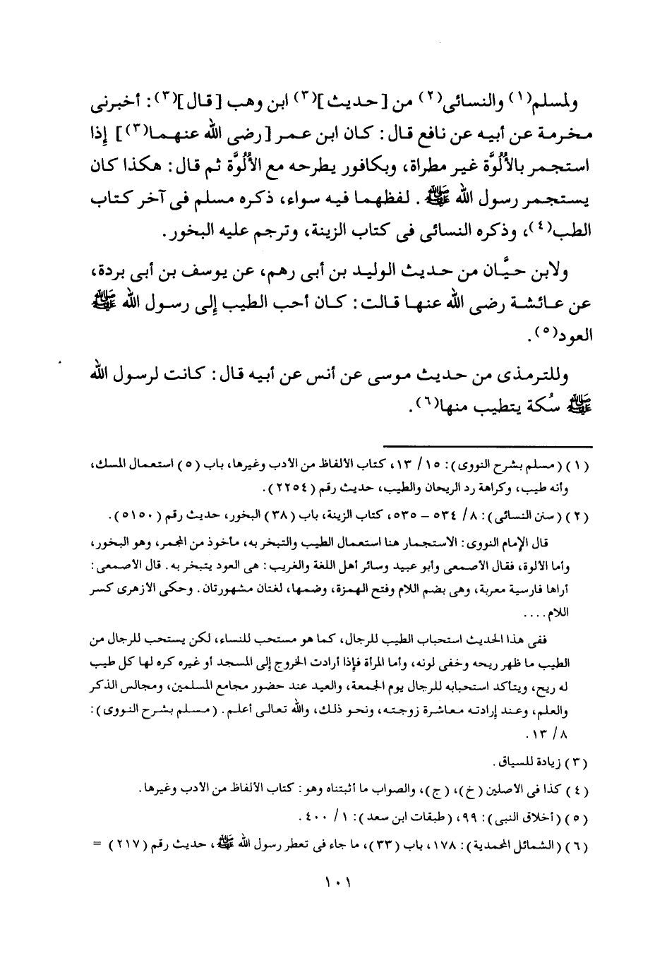[ (2) ] (سنن النسائي) : 8/ 534- 535، كتاب الزينة، باب (38) البخور، حديث رقم (5150) .