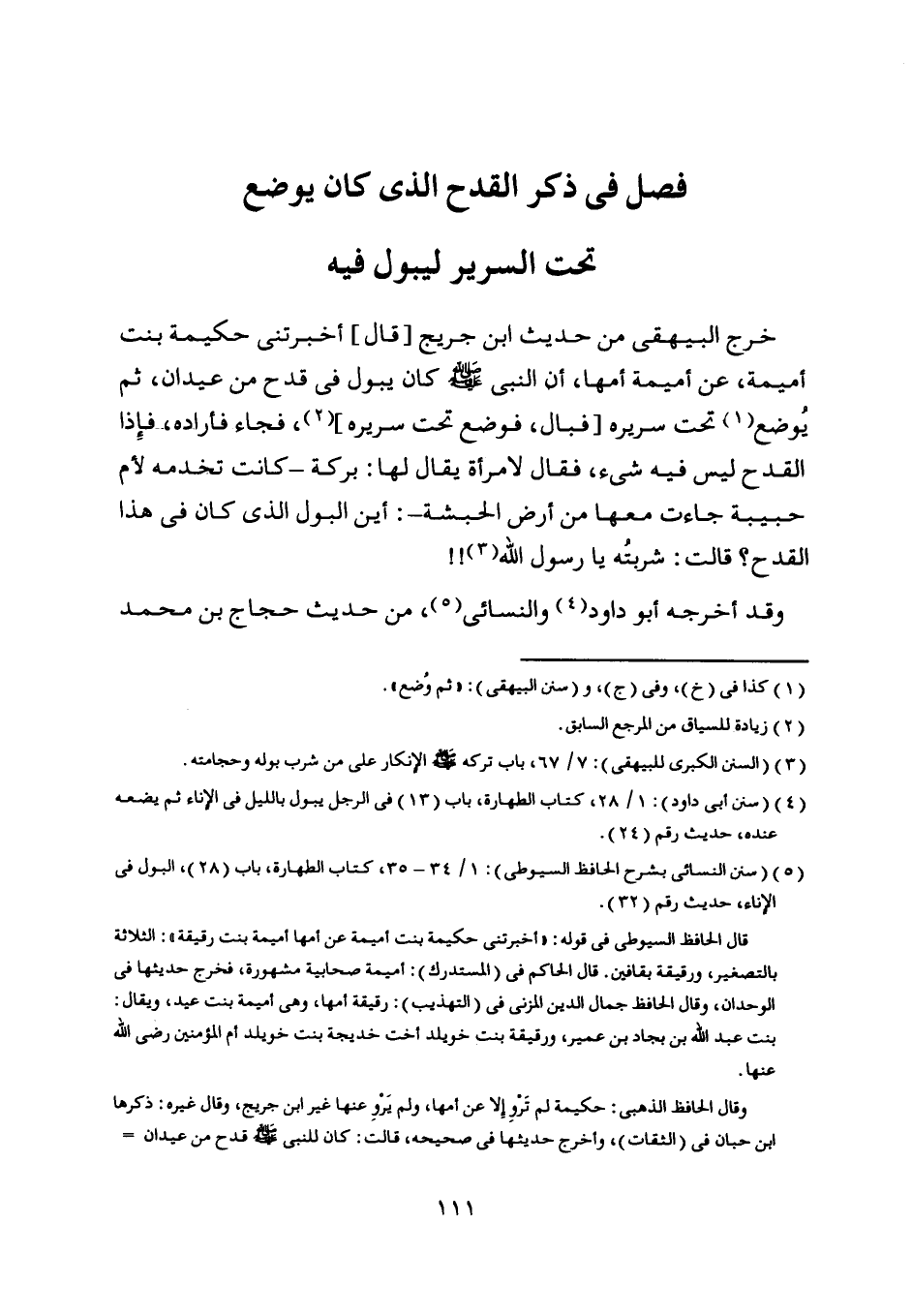 فصل في ذكر القدح الّذي كان يوضع تحت السرير ليبول فيه