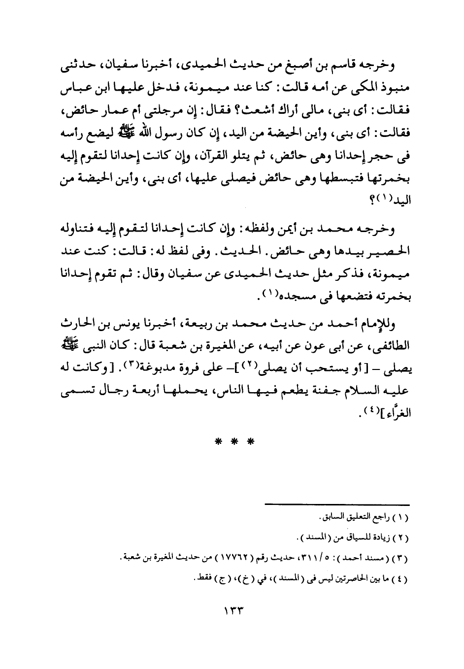 [ (3) ] (مسند أحمد) : 5/ 311، حديث رقم (17762) من حديث المغيرة بن شعبة.