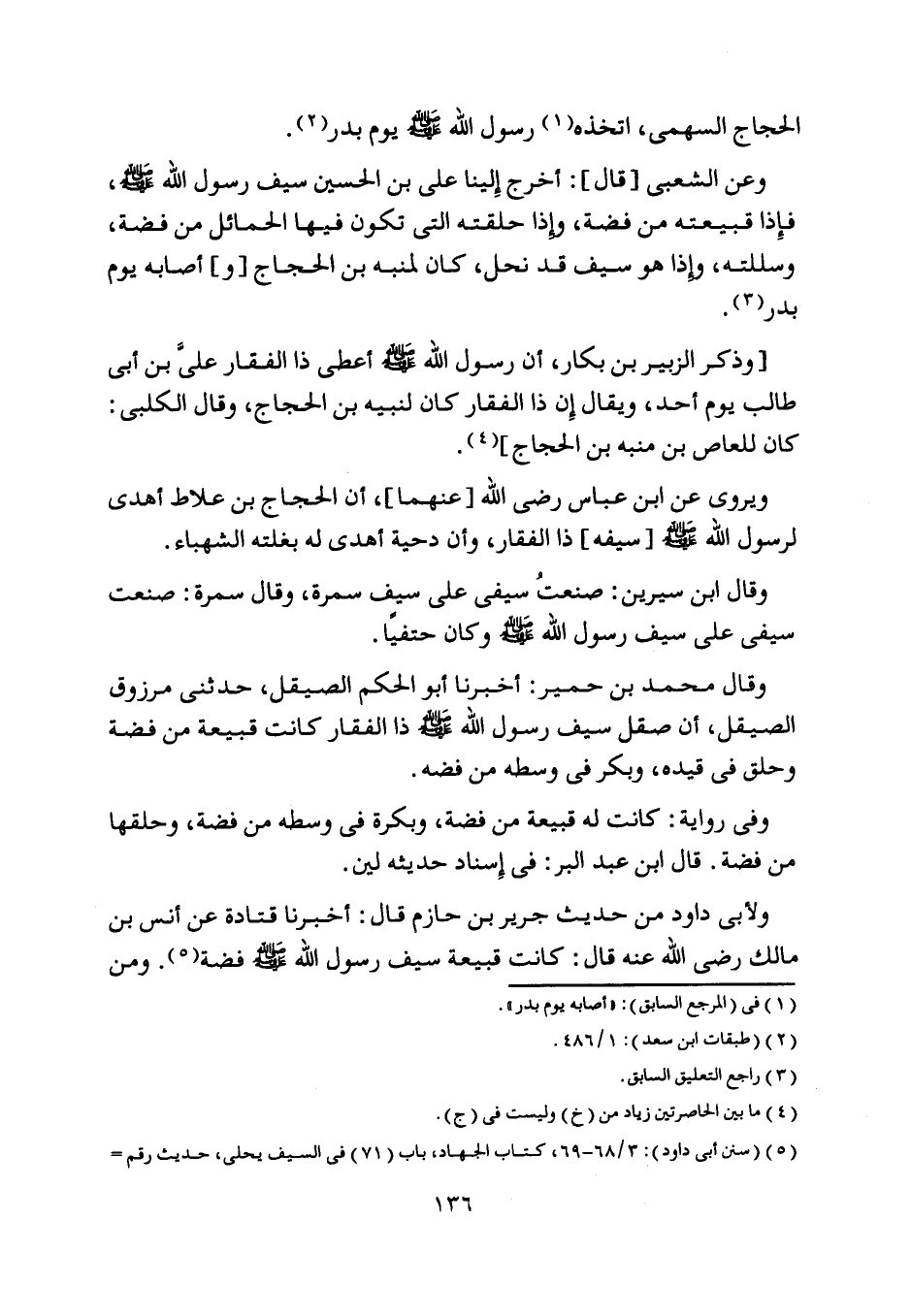 [ (5) ] (سنن أبى داود) : 3/ 68- 69، كتاب الجهاد، باب (71) في السيف يحلى، حديث رقم