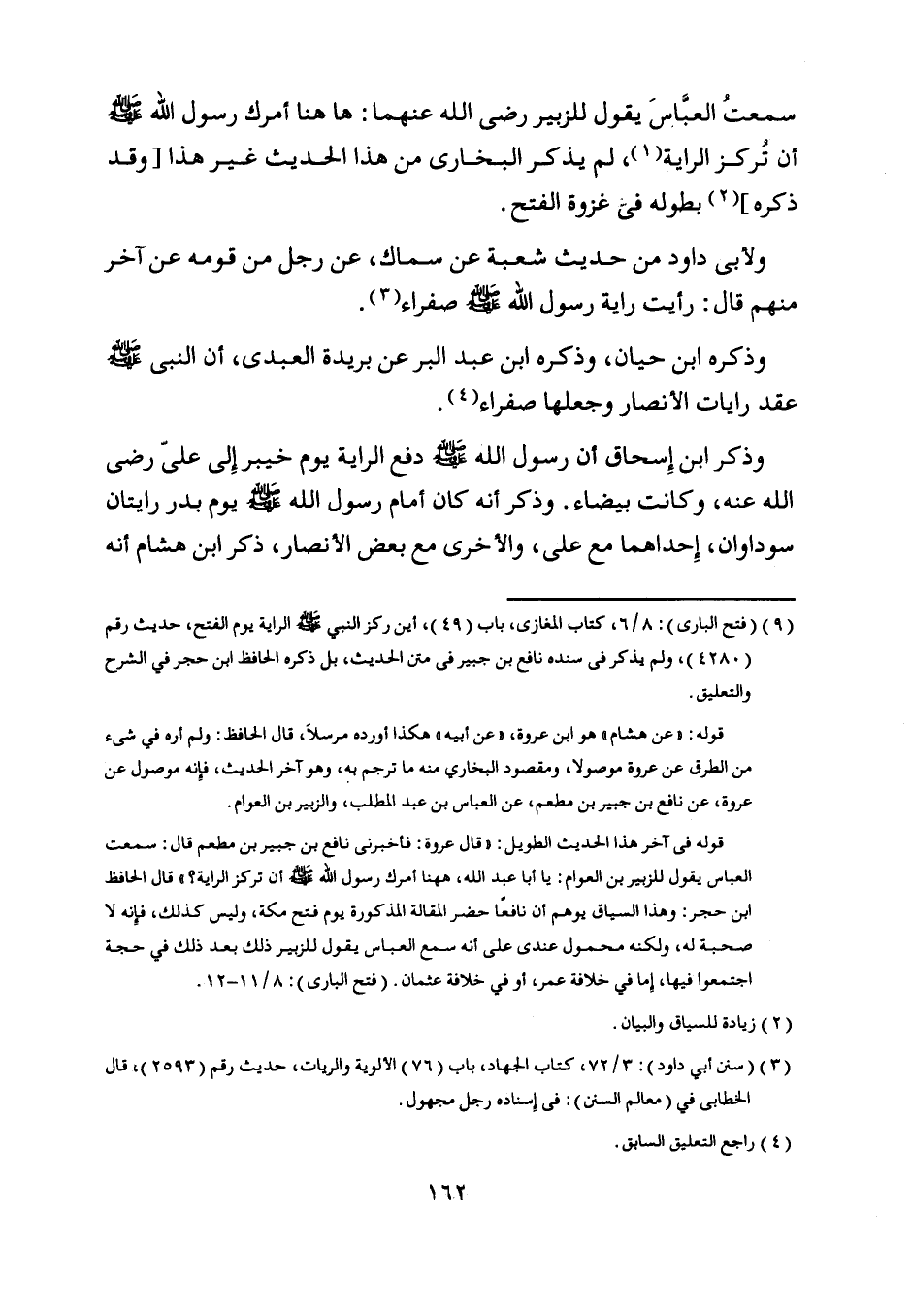 [ (1) ] (فتح الباري) : 8/ 6، كتاب المغازي، باب (49) ، أين ركز النبي صلى اللَّه عليه وسلم الراية يوم الفتح، حديث رقم (4280) ، ولم يذكر في سنده نافع بن جبير في متن الحديث، بل ذكره الحافظ ابن حجر في الشرح والتعليق.