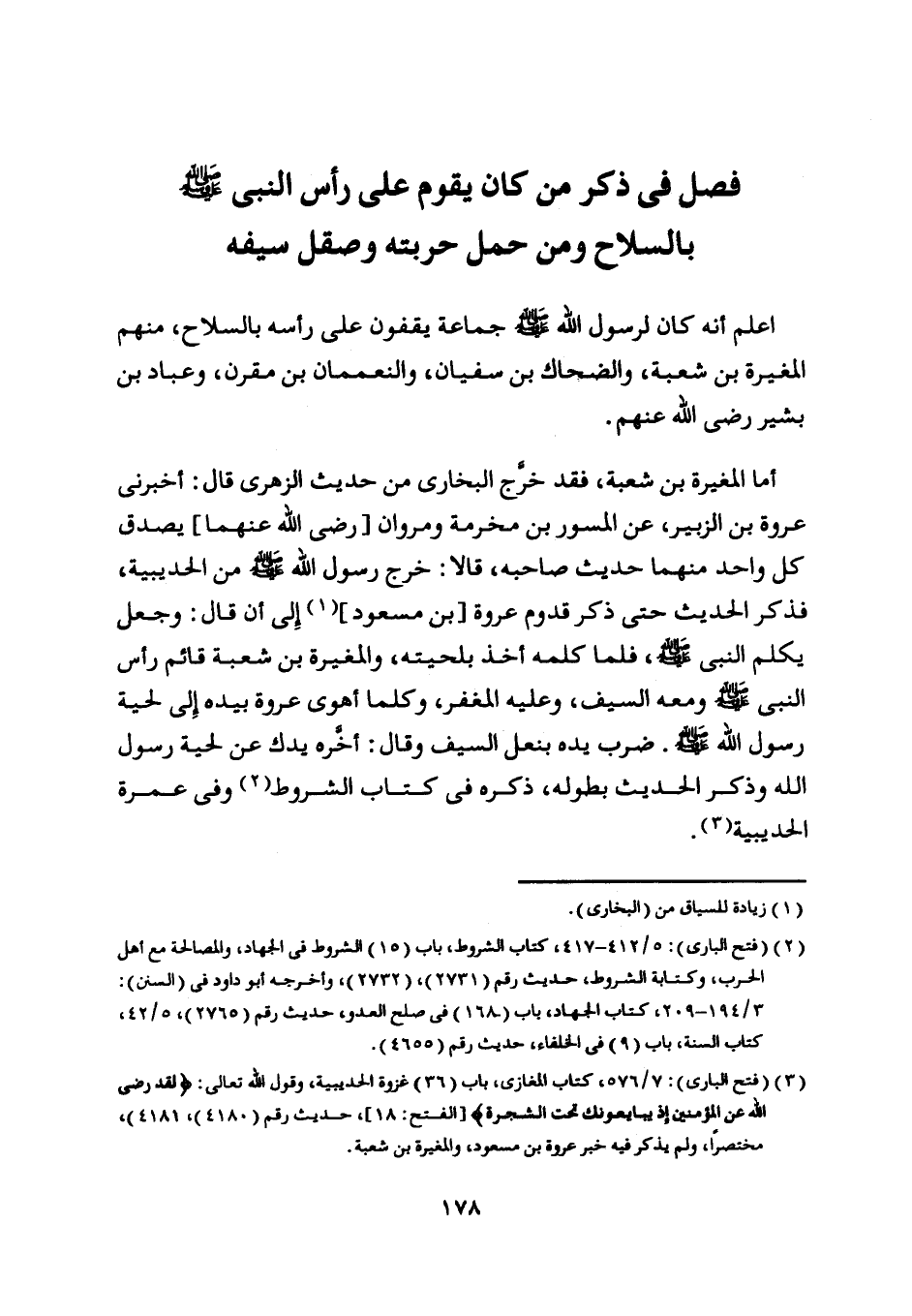 [ (3) ] (فتح الباري) : 7/ 576، كتاب المغازي، باب (36) غزوة الحديبيّة، وقول اللَّه تعالى: لَقَدْ رَضِيَ اللَّهُ عَنِ الْمُؤْمِنِينَ إِذْ يُبايِعُونَكَ تَحْتَ الشَّجَرَةِ [الفتح: 18] ، حديث رقم (4180) ، 4181) ، مختصرا، ولم يذكر فيه خبر عروة بن مسعود، والمغيرة بن شعبة.