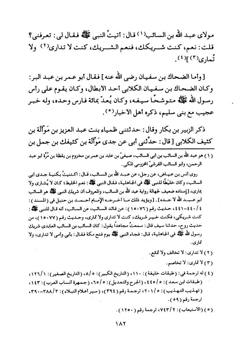 روى أنس بن عياض، عن رجل، عن عبد اللَّه بن السائب، قال: اكتنيت بكنية جدي أبى السائب، وكان خليطا للنّبيّ صلى اللَّه عليه وسلم في الجاهلية، فقال النبي صلى اللَّه عليه وسلم: نعم الخليط، كان لا يشارى ولا يمارى،