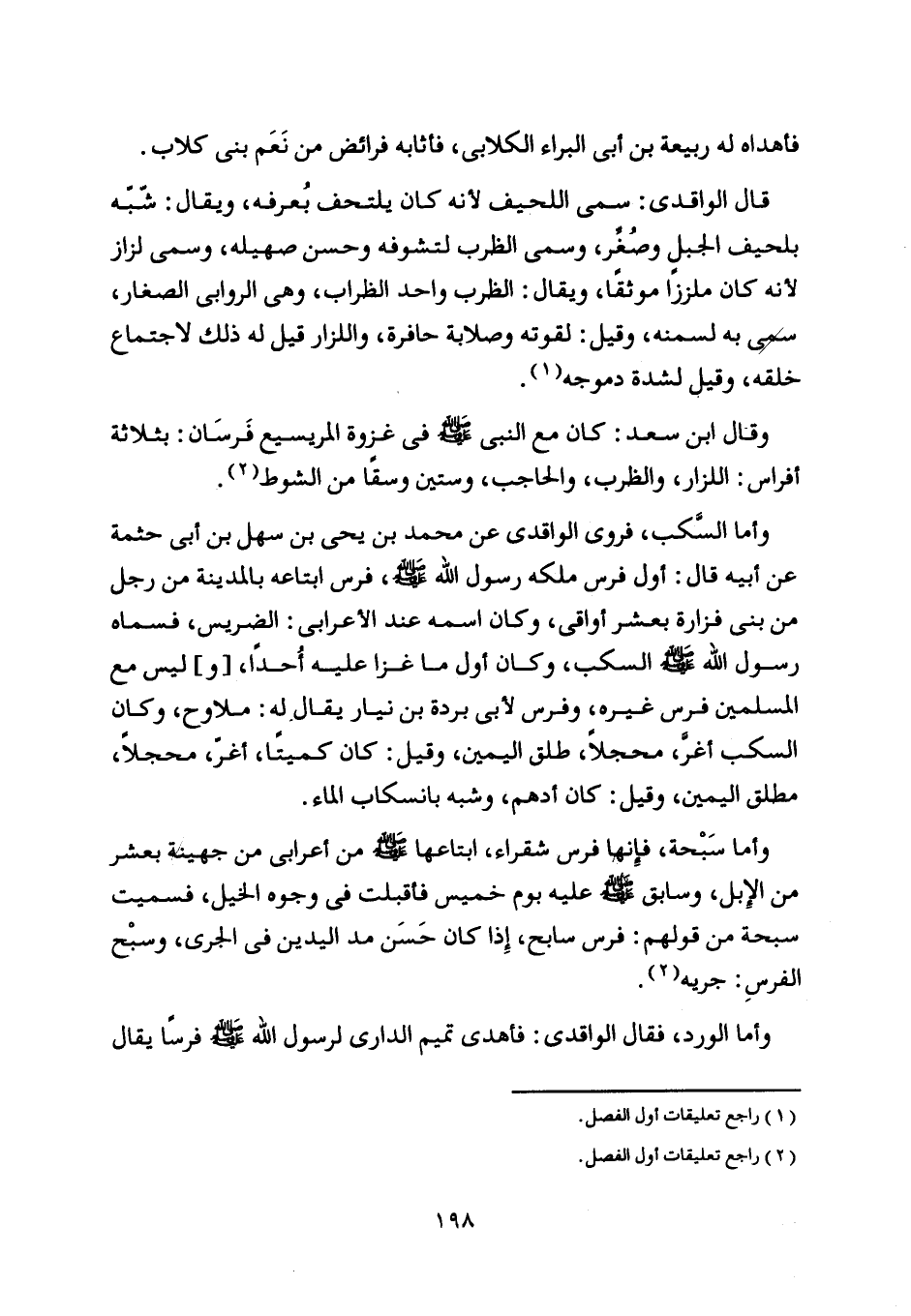 وقال ابن سعد: كان مع النبي صلى اللَّه عليه وسلم في غزوة المريسيع فرسان: بثلاثة أفراس: اللزاز، والظرب، والحاجب، وستين وسقا من الشوط [ (2) ] .