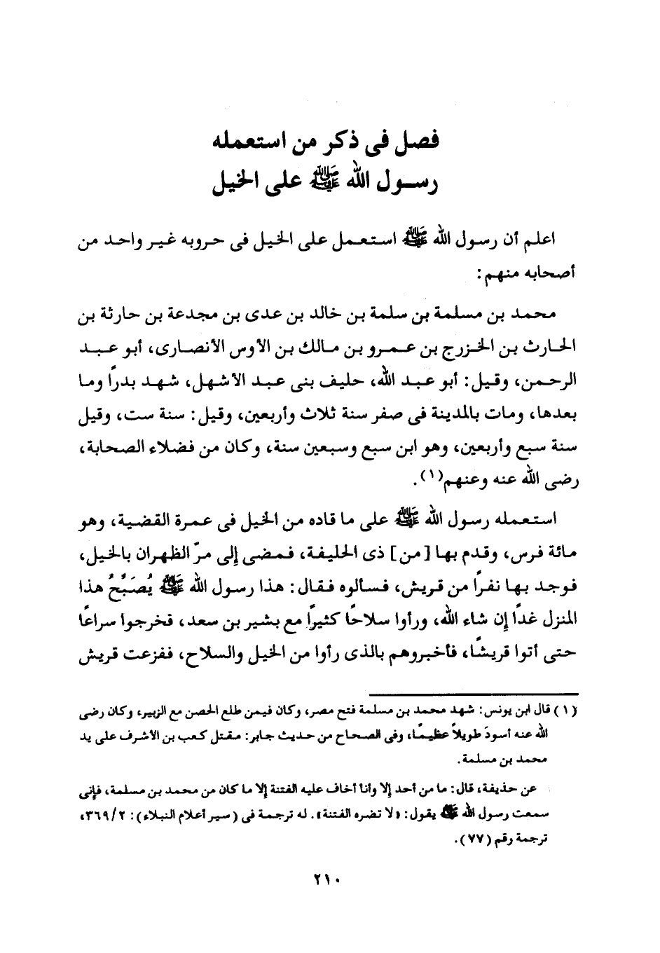 فصل في ذكر من استعمله رسول اللَّه صلى اللَّه عليه وسلم على الخيل
