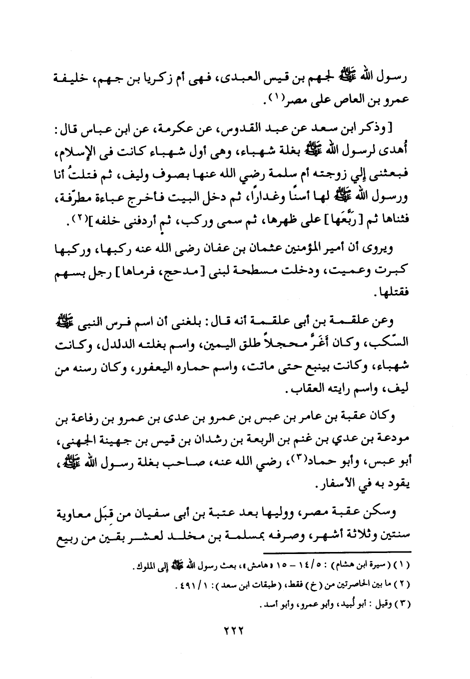 وكان عقبة بن عامر بن عبس بن عمرو بن عدي بن عمرو بن رفاعة بن مودعة بن عدي بن غنم بن الربعة بن رشدان بن قيس بن جهينة الجهنيّ، أبو عبس، وأبو حماد [ (3) ] ، رضى اللَّه عنه، صاحب بغلة رسول اللَّه صلى اللَّه عليه وسلم، يقود به في الأسفار.