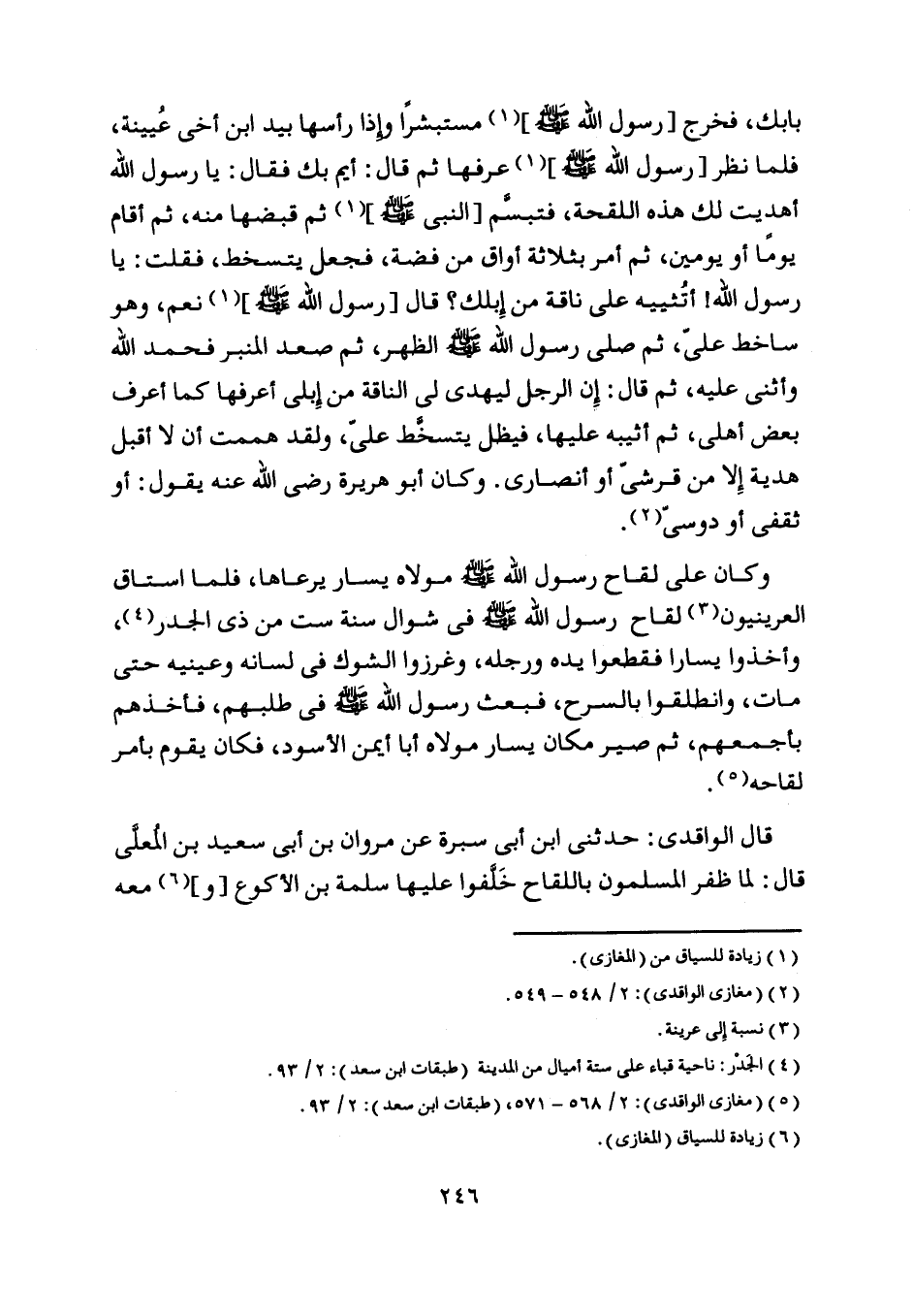 [ (5) ] (مغازي الواقدي) : 2/ 568- 571، (طبقات ابن سعد) : 2/ 93.