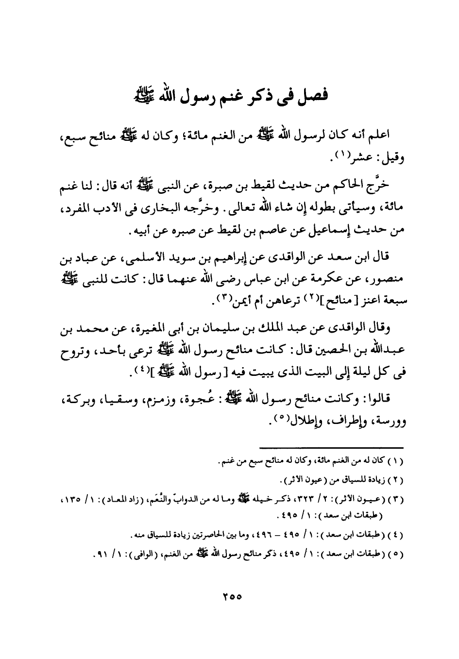 [ (5) ] (طبقات ابن سعد) : 1/ 495، ذكر منائح رسول اللَّه صلى اللَّه عليه وسلم من الغنم، (الوافي) : 1/ 91.