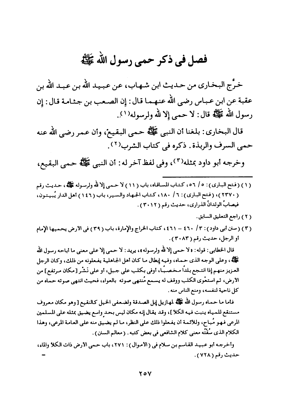 [ (3) ] (سنن أبى داود) : 3/ 460- 461، كتاب الخراج والإمارة، باب (39) في الأرض يحميها الإمام أو الرجل، حديث رقم (3083) .