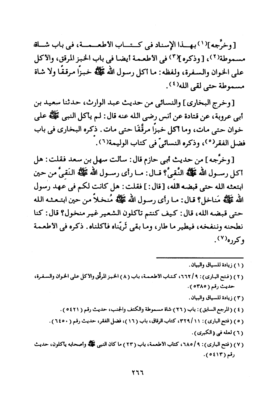 [ (7) ] (فتح الباري) : 9/ 685، كتاب الأطعمة، باب (23) ما كان النبي صلى اللَّه عليه وسلم وأصحابه يأكلون، حديث رقم (5413) .