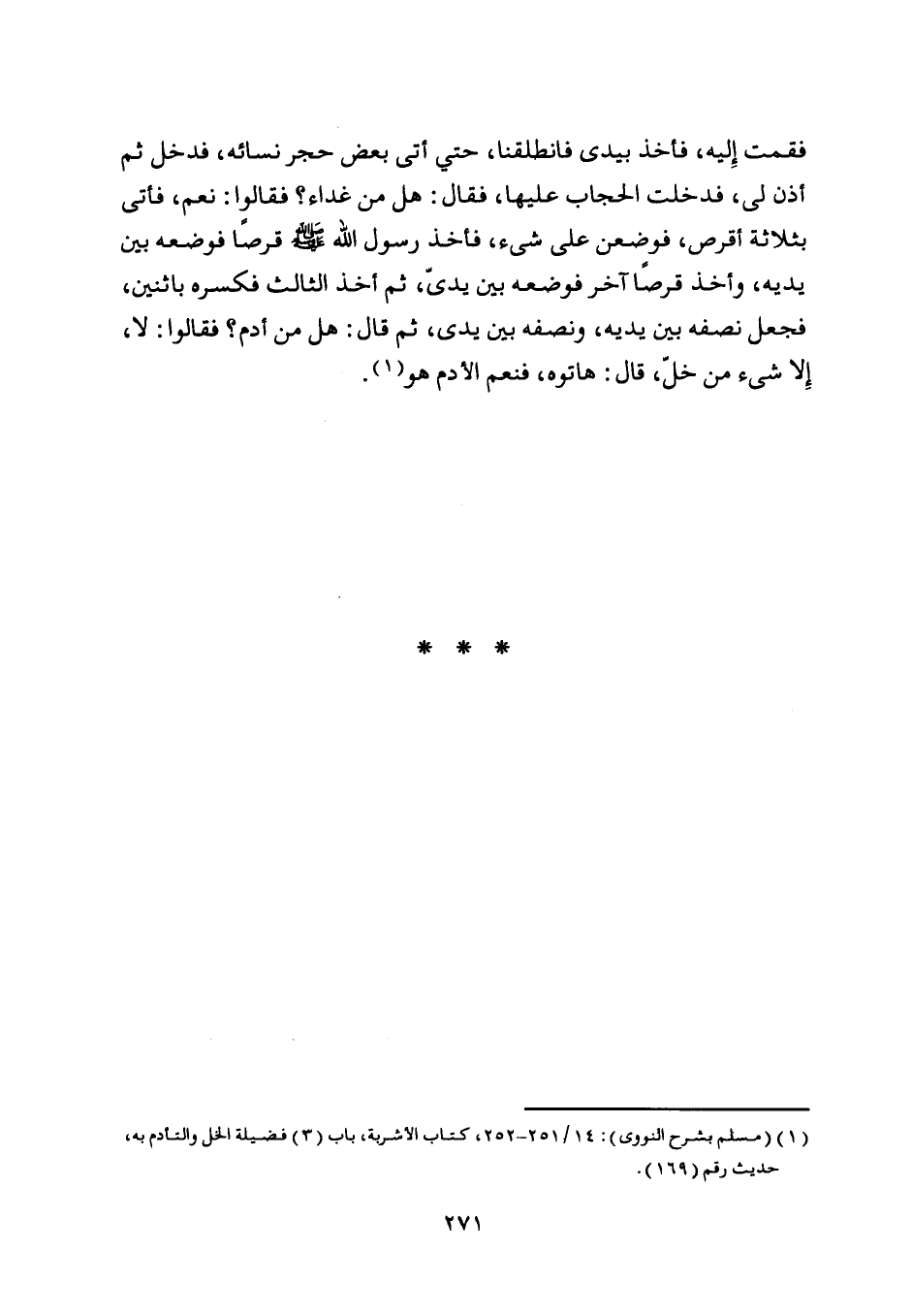 [ (1) ] (مسلم بشرح النووي) : 14/ 251- 252، كتاب الأشربة، باب (3) فضيلة الخل والتأدم به، حديث رقم (169) .
