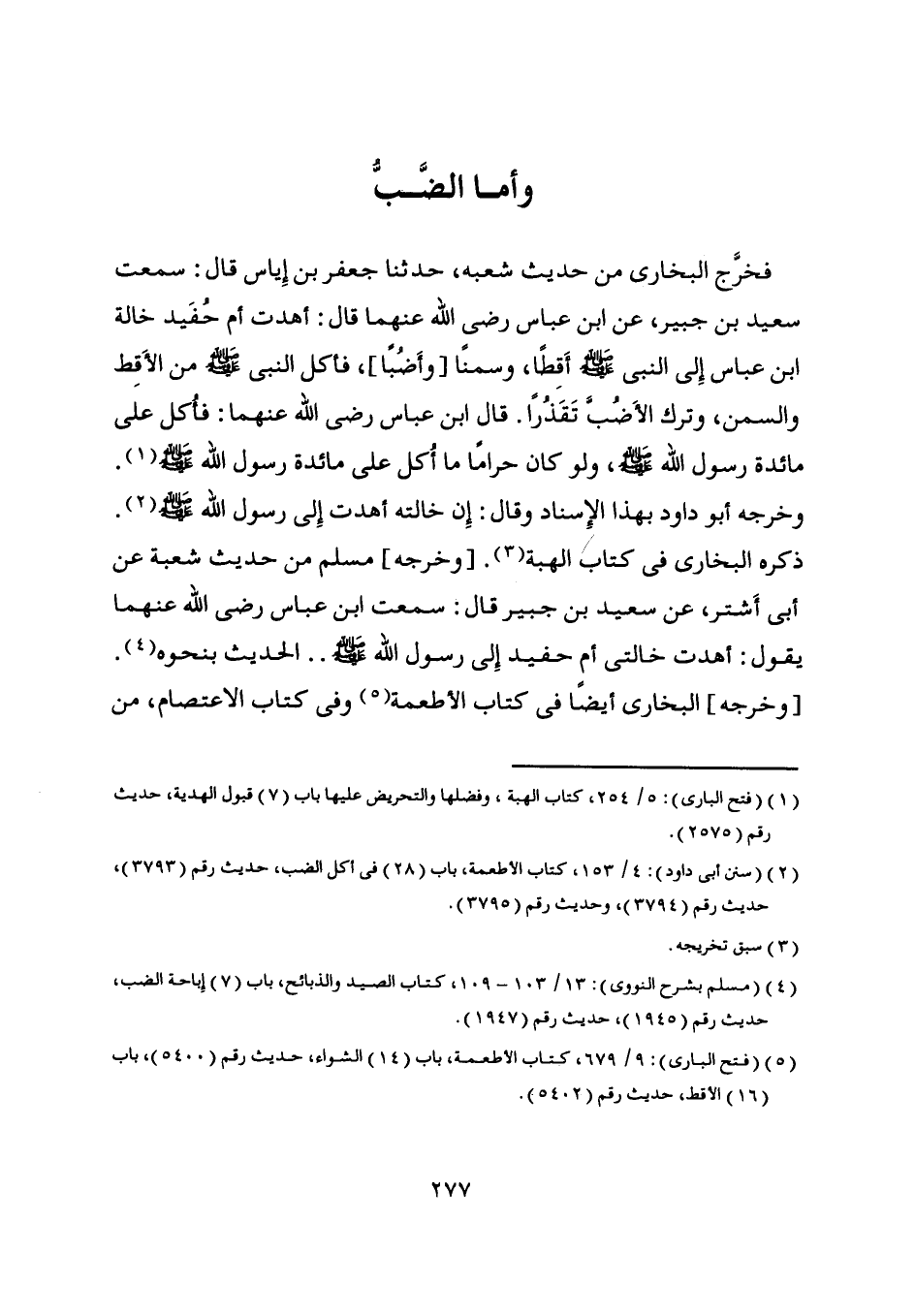 [ (2) ] (سنن أبى داود) : 4/ 153، كتاب الأطعمة، باب (28) في أكل الضب، حديث رقم (3793) ، حديث رقم (3794) ، وحديث رقم (3795) .