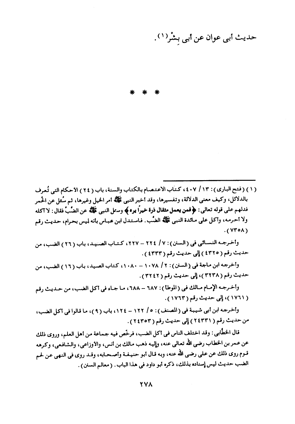 وأخرجه النسائي في (السنن) : 7/ 224- 227، كتاب الصيد، باب (26) الضب، من حديث رقم (4325) إلى حديث رقم (4333) .