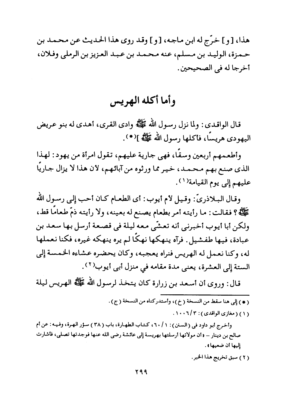 قال الواقدي: ولما نزل رسول اللَّه صلى اللَّه عليه وسلم وادي القرى، أهدى له بنو عريض اليهودي هريسا، فأكلها رسول اللَّه صلى اللَّه عليه وسلم] [ (1) ] .