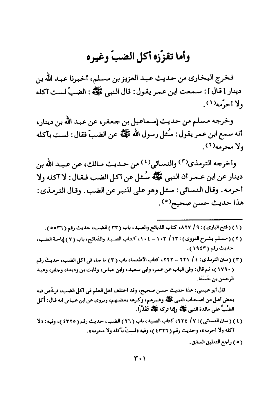 [ (1) ] (فتح الباري) : 9/ 827، كتاب الذبائح والصيد، باب (33) الضب، حديث رقم (5536) .