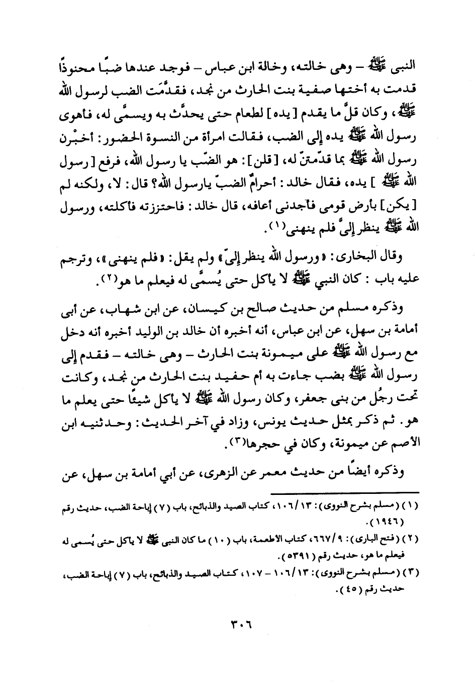 [ (3) ] (مسلم بشرح النووي) : 13/ 106- 107، كتاب الصيد والذبائح، باب (7) إباحة الضب، حديث رقم (45) .