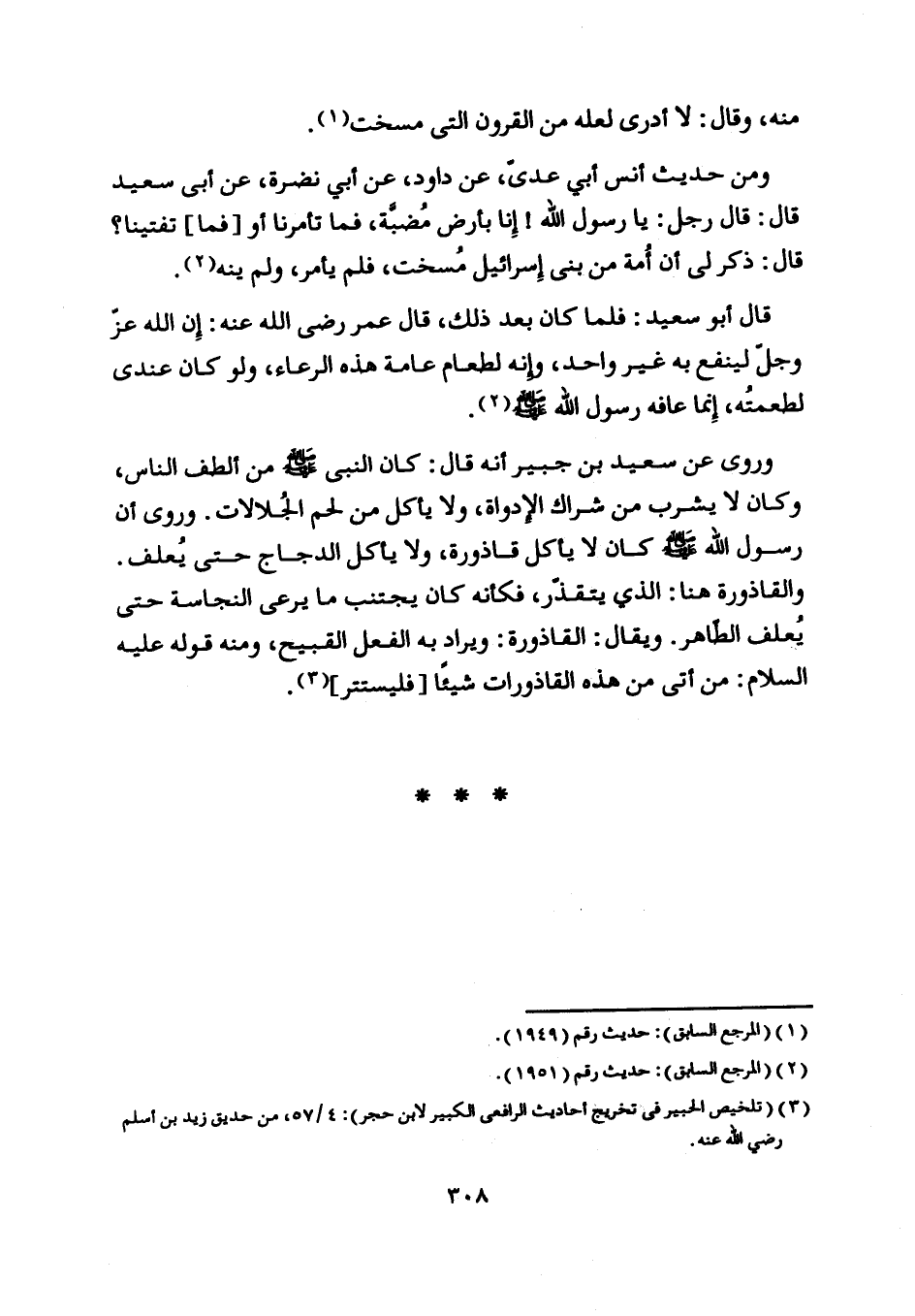 قال أبو سعيد: فلما كان بعد ذلك، قال عمر رضى اللَّه عنه: إن اللَّه عزّ وجلّ لينفع به غير واحد، وإنه لطعام عامة هذه الرعاء، ولو كان عندي لطعمته، إنما عافه رسول اللَّه صلى اللَّه عليه وسلم [ (2) ] .