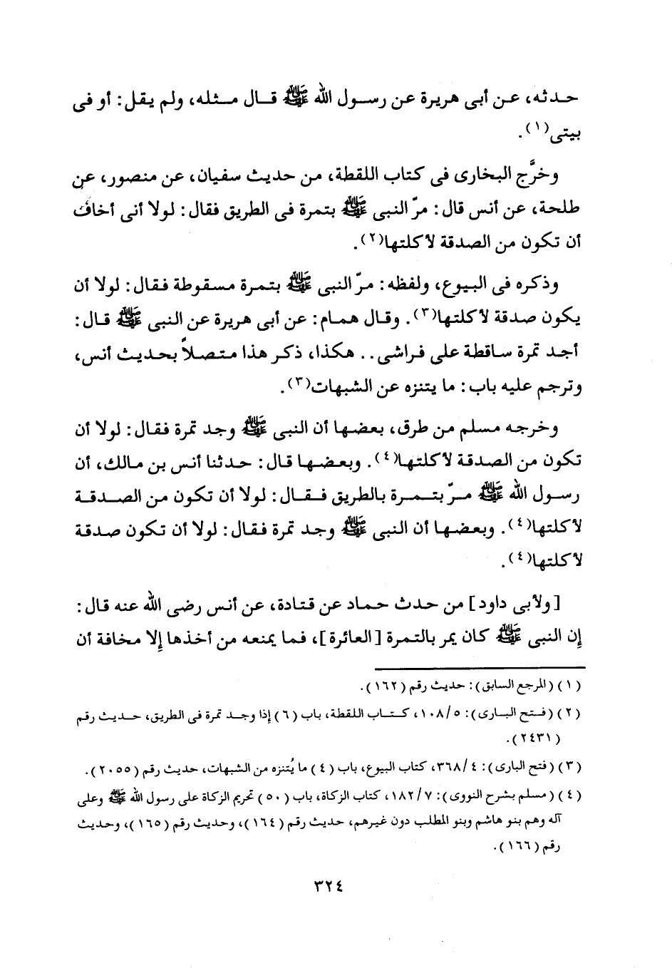 وبعضها قال: حدثنا أنس بن مالك، أن رسول اللَّه صلى اللَّه عليه وسلم مرّ بتمرة بالطريق فقال: لولا أن تكون من الصدقة لأكلتها [ (4) ] .