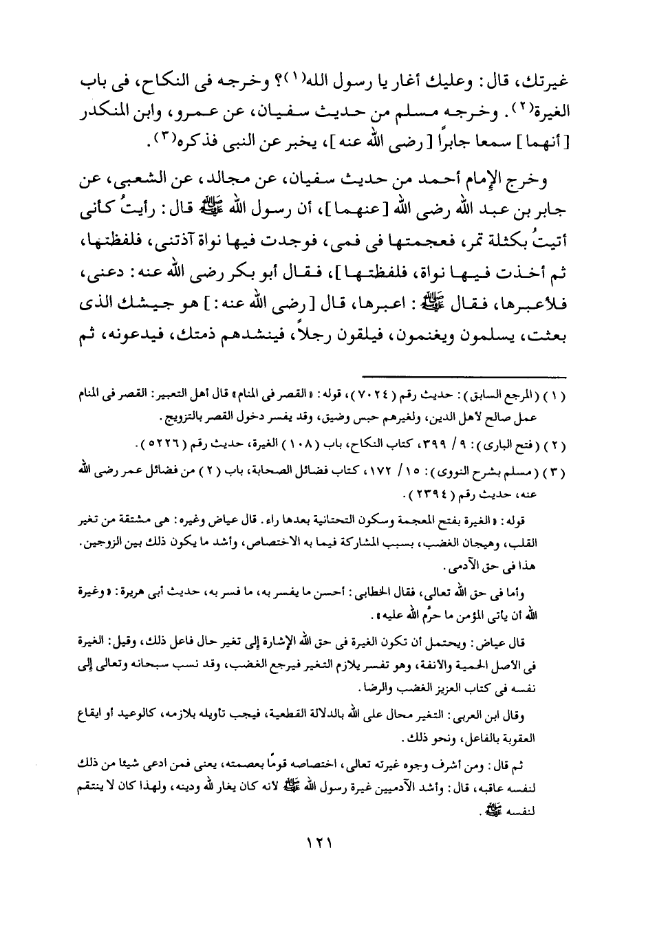 [ (2) ] (فتح الباري) : 9/ 399، كتاب النكاح، باب (108) الغيرة، حديث رقم (5226) .