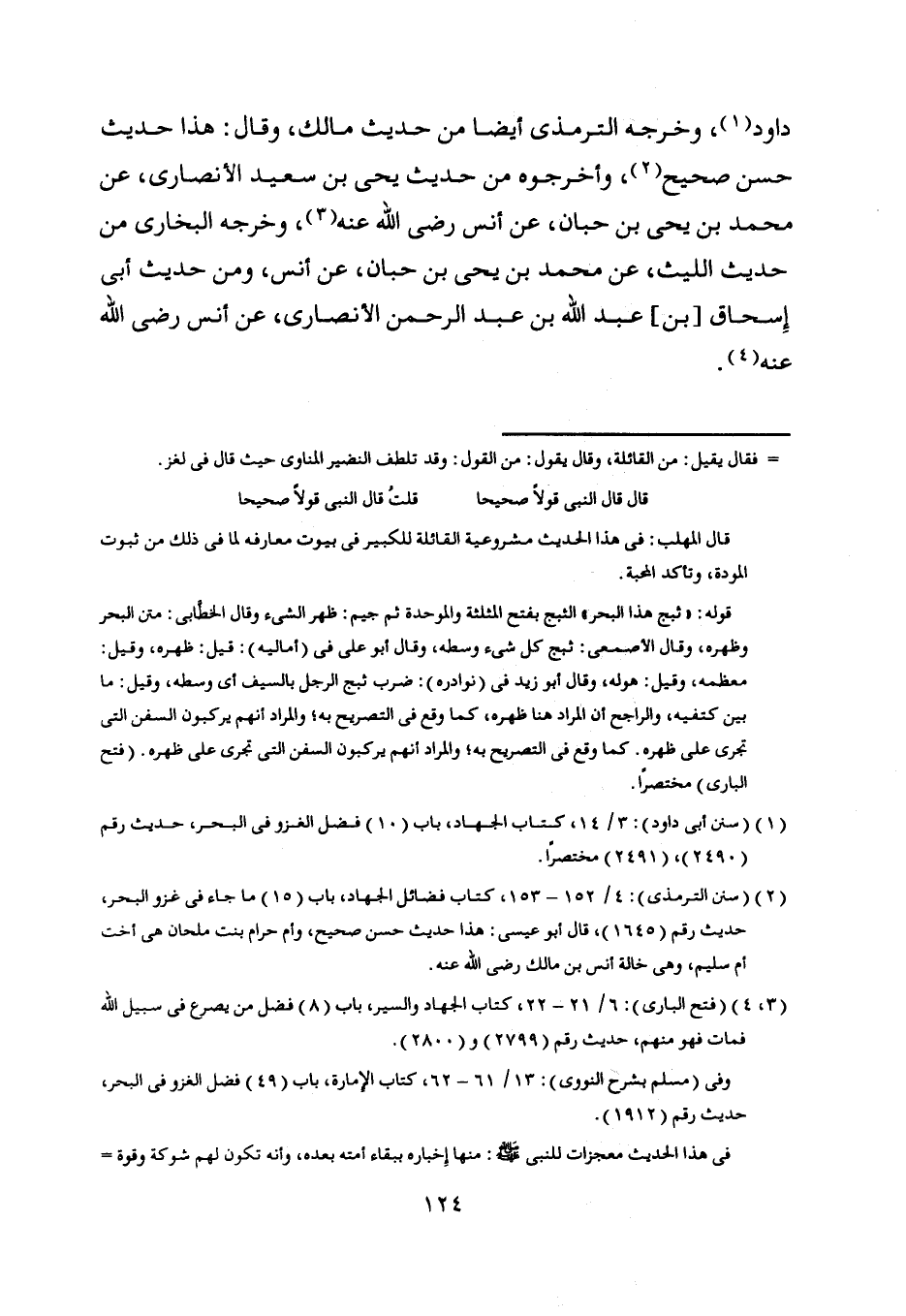[ (1) ] (سنن أبى داود) : 3/ 14، كتاب الجهاد، باب (10) فضل الغزو في البحر، حديث رقم (2490) ، (2491) مختصرا.