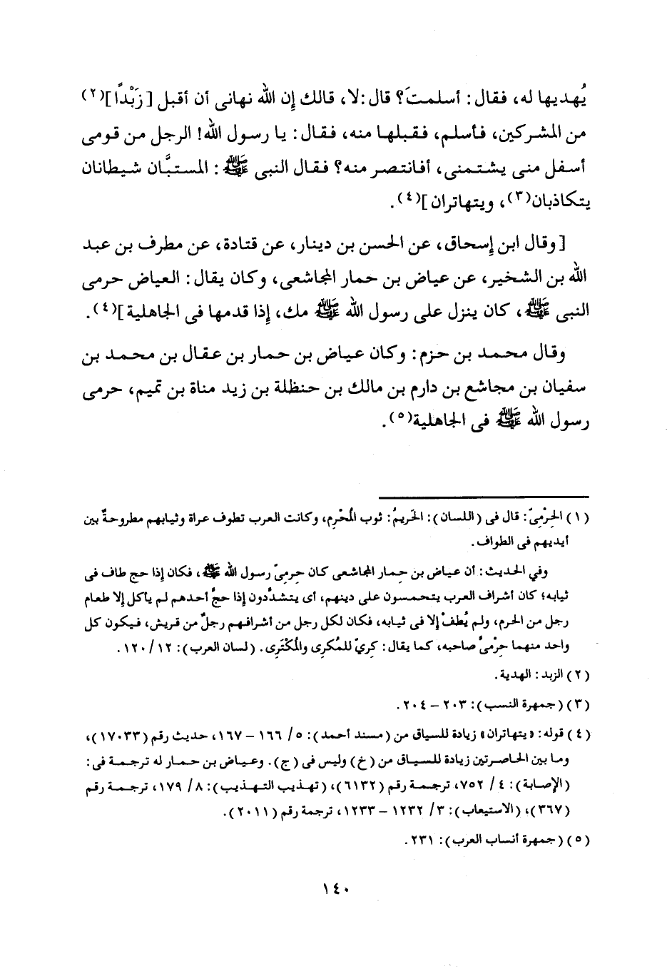 [وقال ابن إسحاق، عن الحسن بن دينار، عن قتادة، عن مطرف بن عبد اللَّه بن الشخير، عن عياض بن حمار المجاشعي، وكان يقال: العياض حرمي النبي صلّى اللَّه عليه وسلّم، كان ينزل على رسول اللَّه صلّى اللَّه عليه وسلّم مك، إذا قدمها في الجاهلية] [ (3) ] .