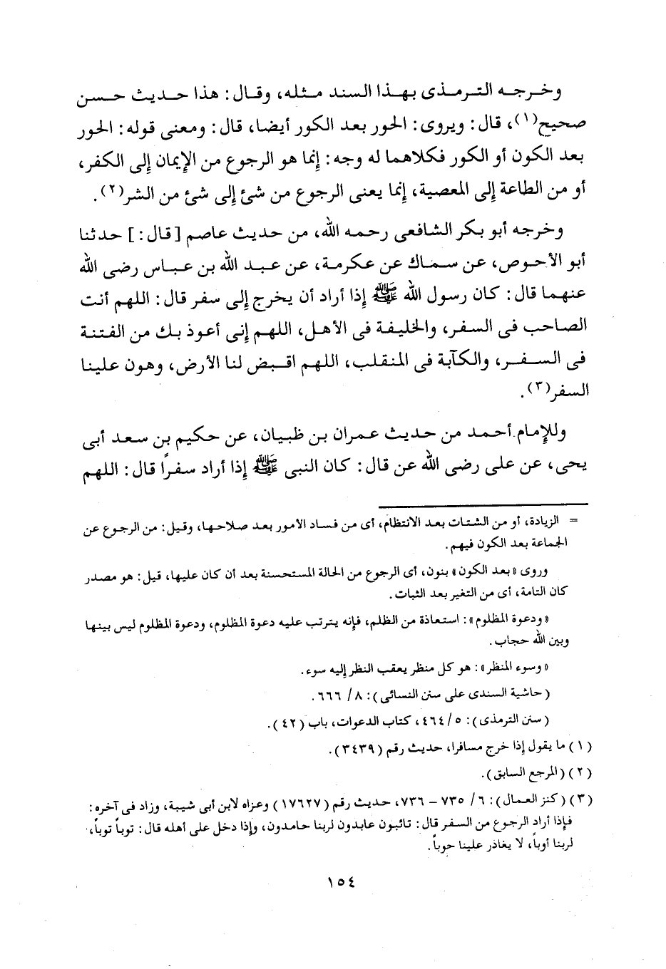 وللإمام أحمد من حديث عمران بن ظبيان، عن حكيم بن سعد أبى يحى، عن على رضى اللَّه عن قال: كان النبي صلّى اللَّه عليه وسلّم إذا أراد سفرا قال: اللَّهمّ