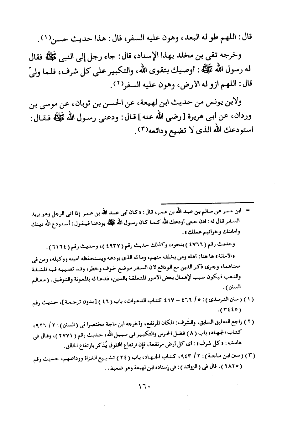 [ (3) ] (سنن ابن ماجة) : 2/ 943، كتاب الجهاد، باب (24) تشييع الغزاة ووداعهم، حديث رقم (2825) . قال في (الزوائد) : في إسناده ابن لهيعة وهو ضعيف.