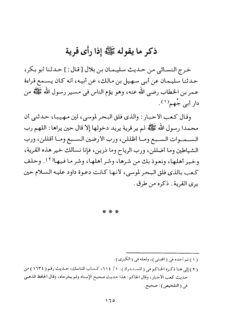 [ (2) ] إلى هنا ذكره الحاكم في (المستدرك) : 1/ 614، كتاب المناسك، حديث رقم (1634) من حديث كعب الأخبار، وقال الحاكم: هذا حديث صحيح الإسناد ولم يخرجاه، وقال الحافظ الذهبي في (التلخيص) : صحيح.