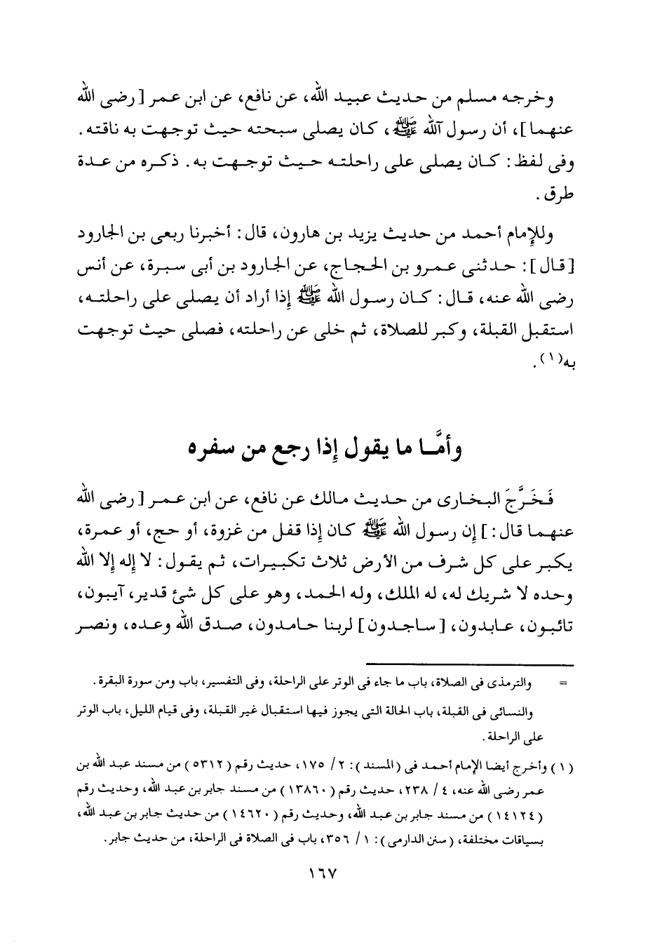[ (1) ] وأخرج أيضا الإمام أحمد في (المسند) : 2/ 175، حديث رقم (5312) من مسند عبد اللَّه بن عمر رضى اللَّه عنه، 4/ 238، حديث رقم (13860) من مسند جابر بن عبد اللَّه، وحديث رقم (14124) من مسند جابر بن عبد اللَّه، وحديث رقم (14620) من حديث جابر بن عبد اللَّه، بسياقات مختلفة، (سنن الدارميّ) : 1/ 356، باب في الصلاة في الراحلة، من حديث جابر.