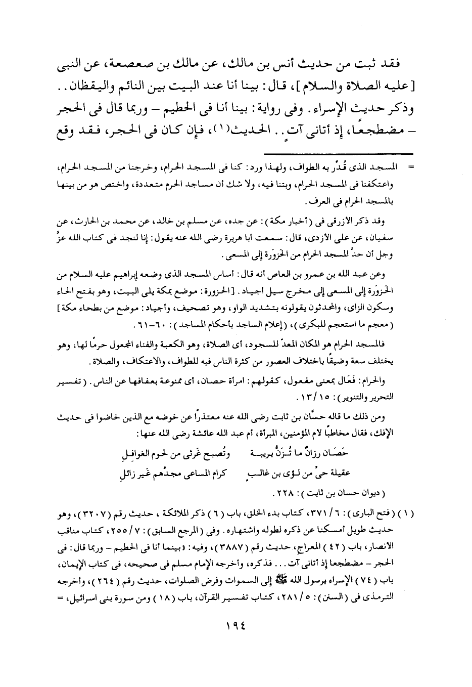 [ () ] المسجد الّذي قدر به الطواف، ولهذا ورد: كنا في المسجد الحرام، وخرجنا من المسجد الحرام، واعتكفنا في المسجد الحرام، وبتنا فيه، ولا شك أن مساجد الحرم متعددة، واختص هو من بينها بالمسجد الحرام في العرف.