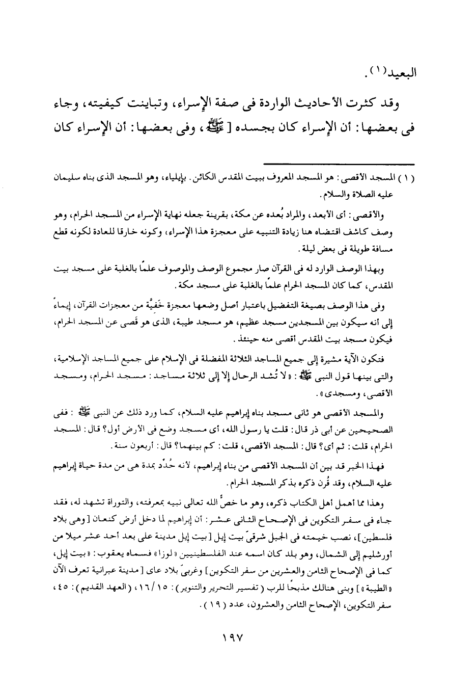 [ (1) ] المسجد الأقصى: هو المسجد المعروف ببيت المقدس الكائن. بإيلياء، وهو المسجد الّذي بناه سليمان عليه الصلاة والسلام.