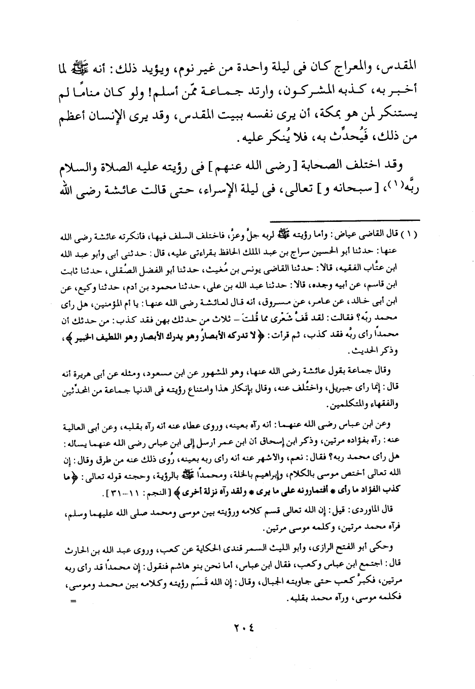 وقد اختلف الصحابة [رضى اللَّه عنهم] في رؤيته عليه الصلاة والسلام ربّه [ (1) ] ، [سبحانه و] تعالى، في ليلة الإسراء، حتى قالت عائشة رضى اللَّه