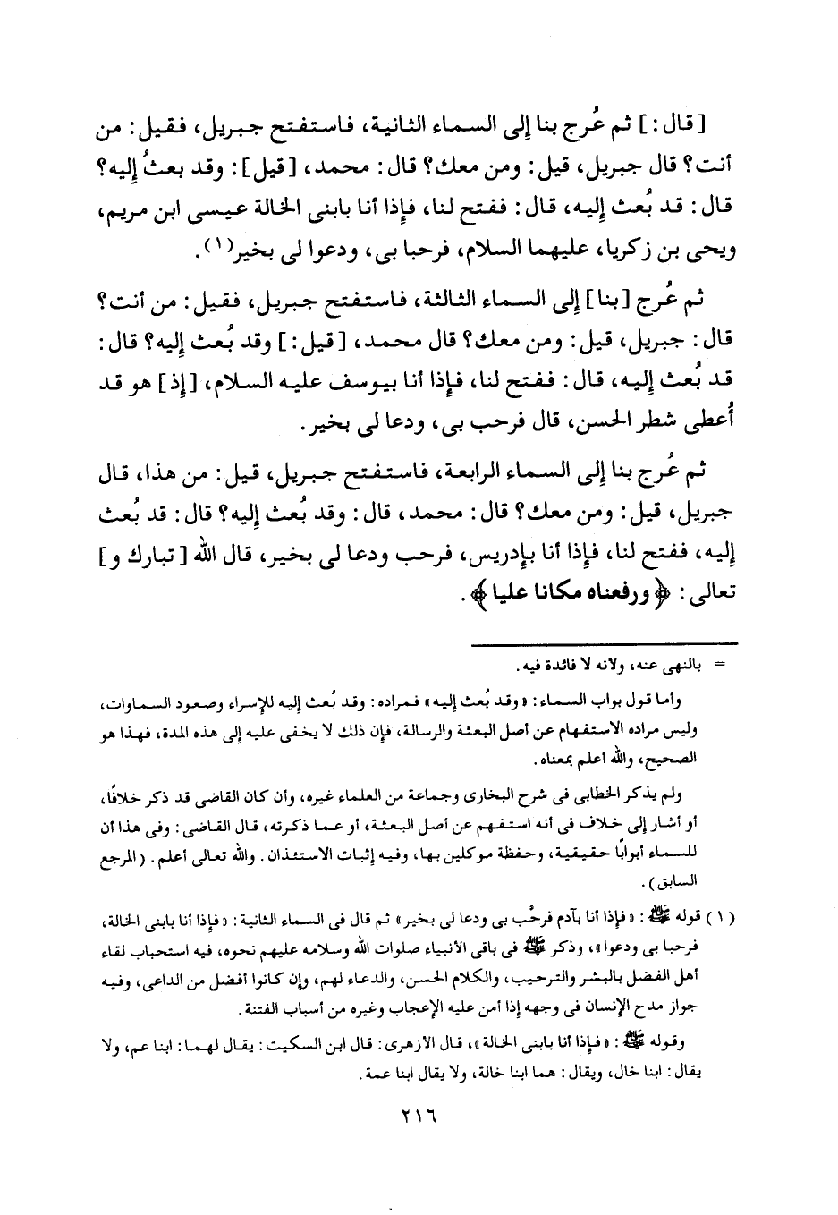 قال: قد بعث إليه، قال: ففتح لنا، فإذا أنا بابني الخالة عيسى ابن مريم، ويحيى بن زكريا، عليهما السلام، فرحبا بى، ودعوا لي بخير [ (1) ] .