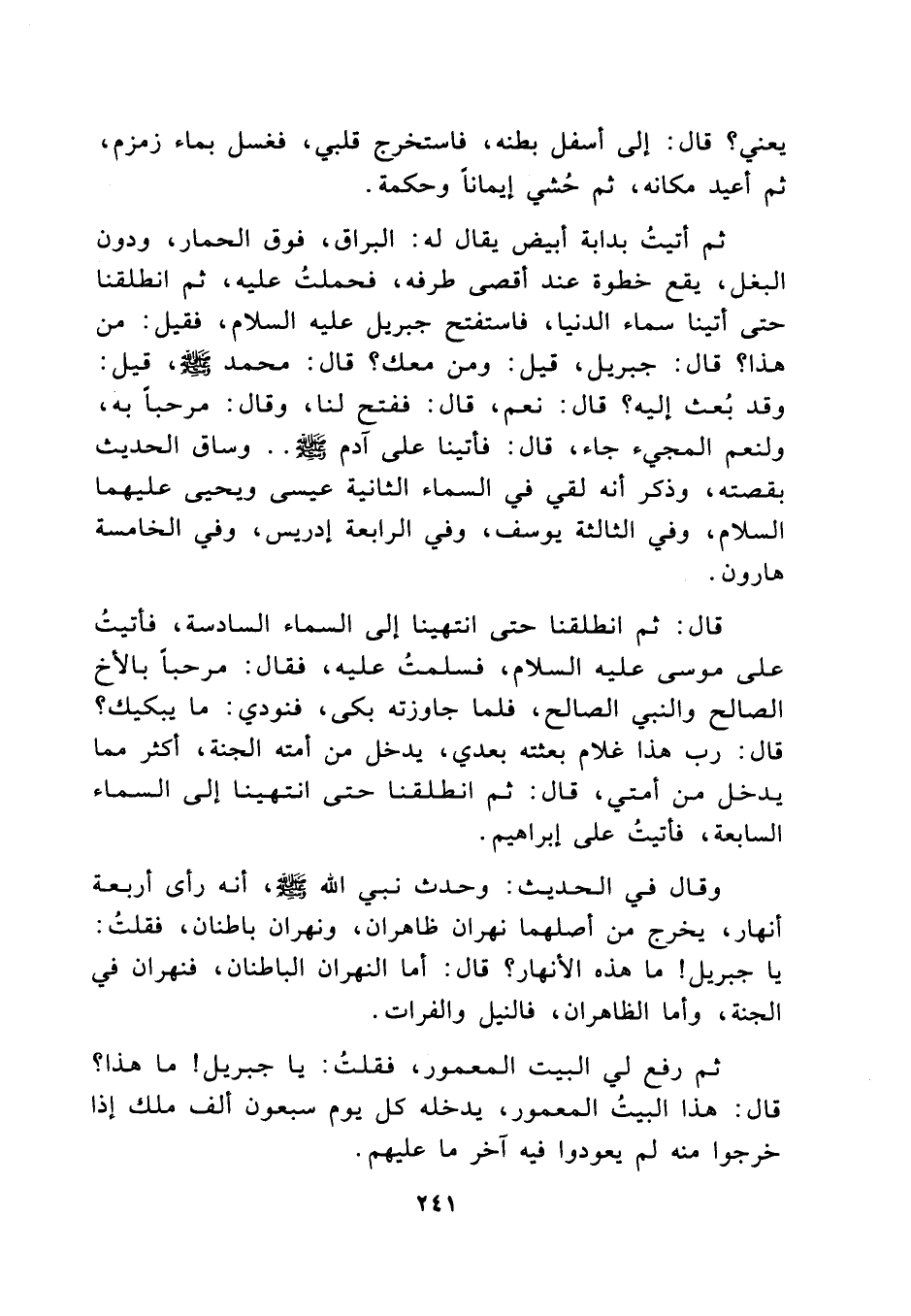 قال: ثم انطلقنا حتى انتهينا إلى السماء السادسة، فأتيت على موسى عليه السلام، فسلمت عليه، فقال: مرحبا بالأخ الصالح والنبي الصالح، فلما جاوزته بكى، فنودي: ما يبكيك؟