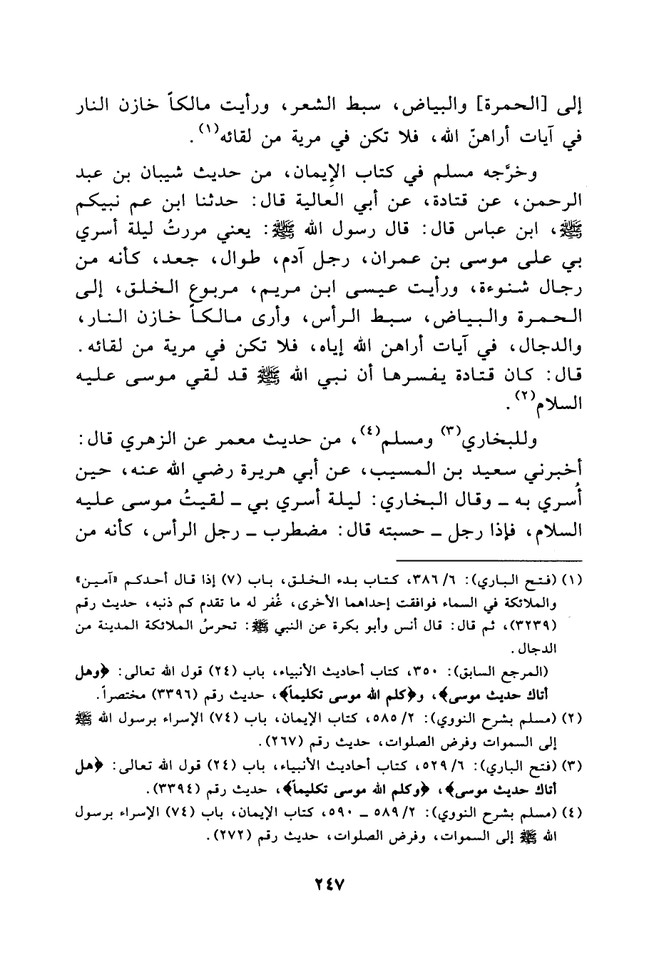 [ (4) ] (مسلم بشرح النووي) : 2/ 589- 590، كتاب الإيمان، باب (74) الإسراء برسول اللَّه صلّى اللَّه عليه وسلّم إلى السموات، وفرض الصلوات، حديث رقم (272) .
