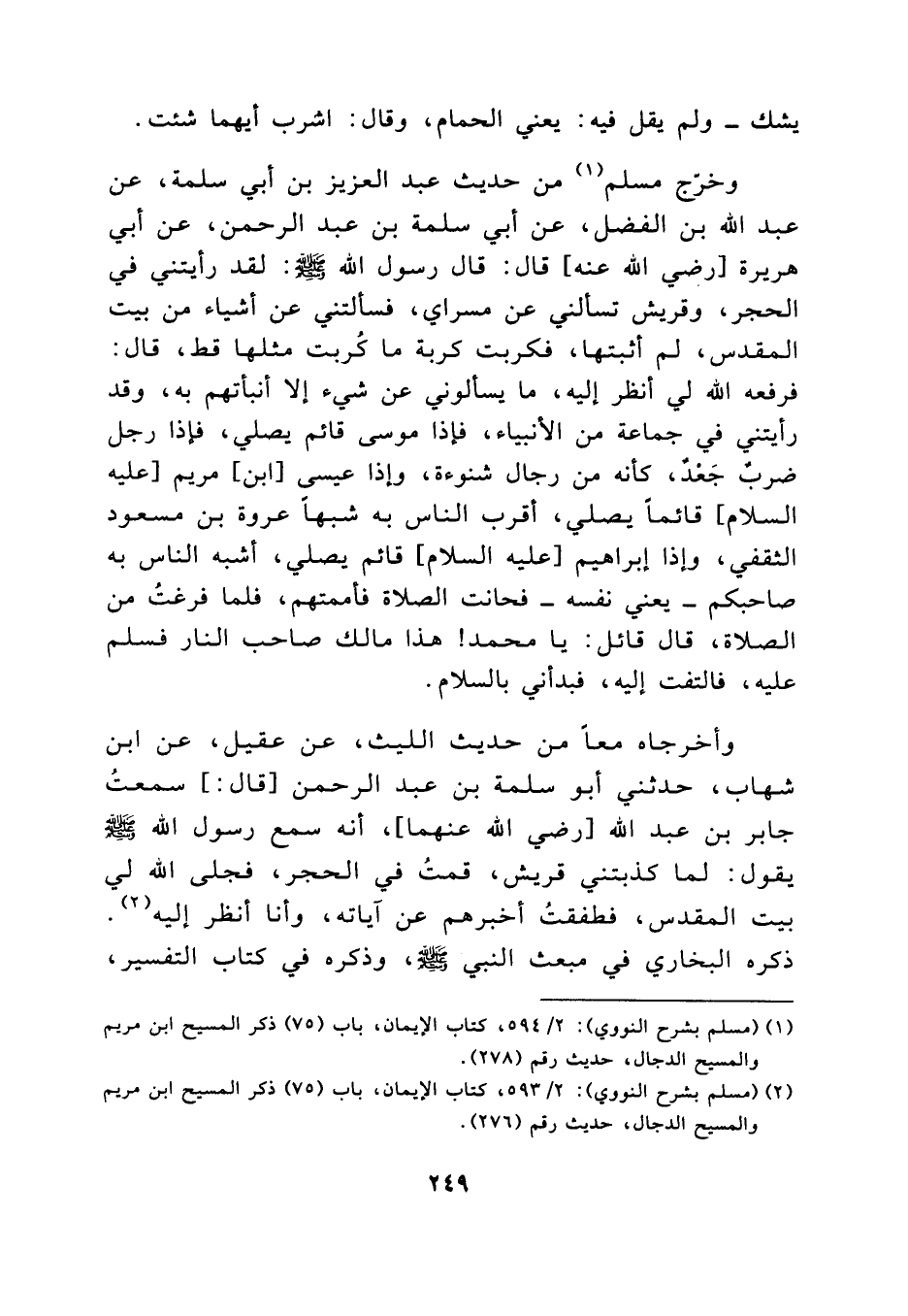 [ (2) ] (مسلم بشرح النووي) : 2/ 593، كتاب الإيمان، باب (75) ذكر المسيح ابن مريم والمسيح الدجال، حديث رقم (276) .