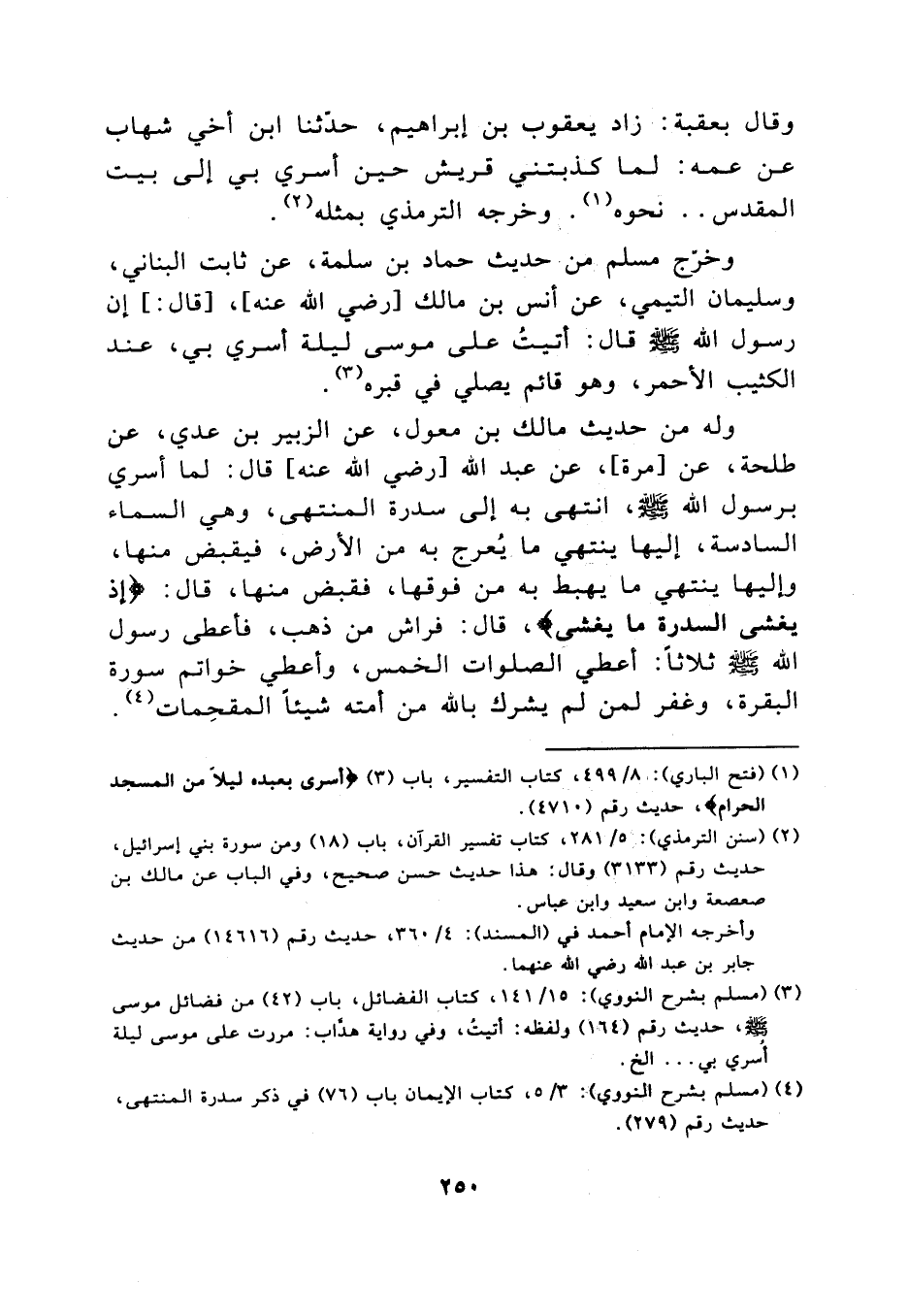 [ (4) ] (مسلم بشرح النووي) : 3/ 5، كتاب الإيمان باب (76) في ذكر سدرة المنتهى، حديث رقم (279) .