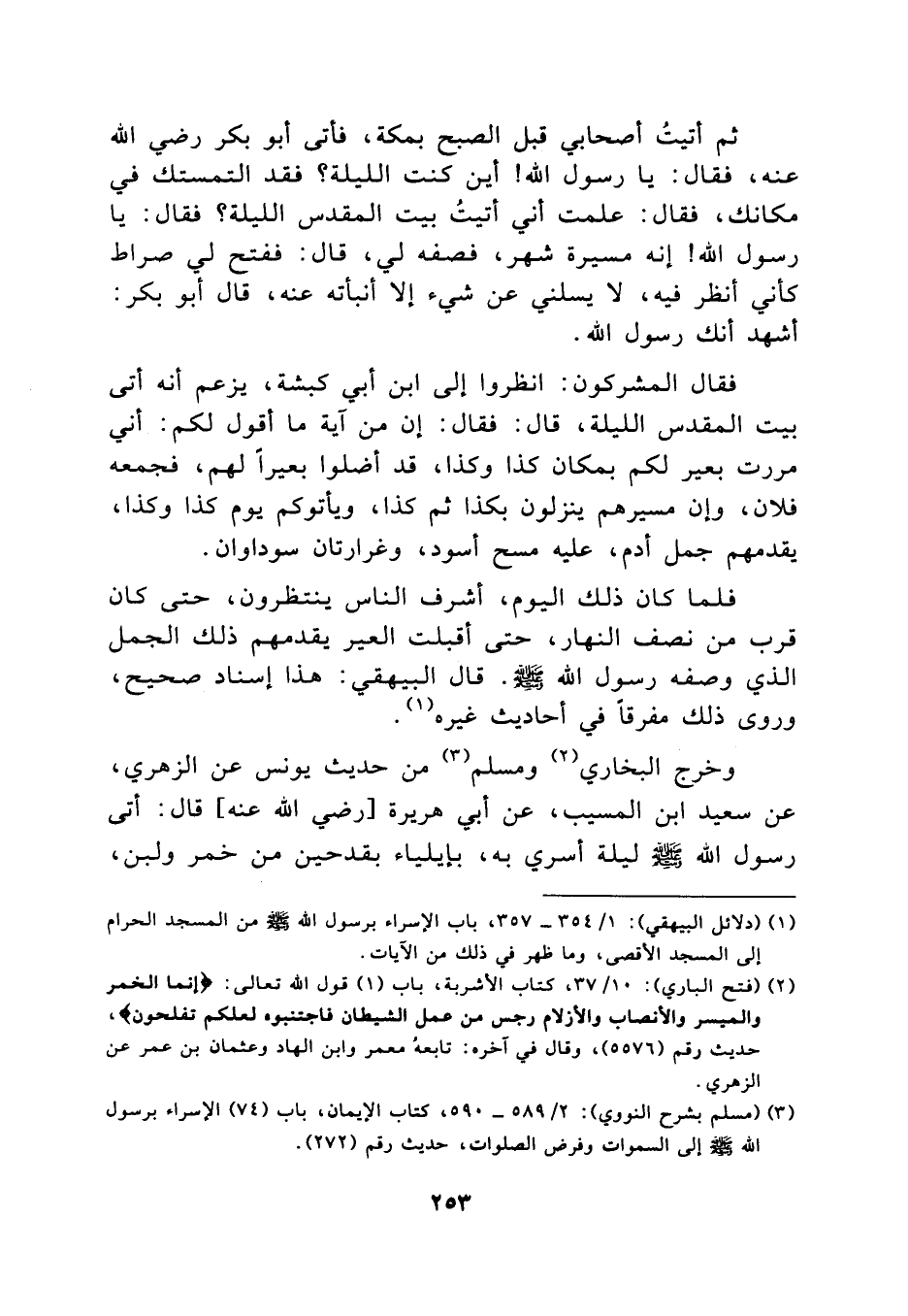 [ (1) ] (دلائل البيهقي) : 1/ 354- 357، باب الإسراء برسول اللَّه صلّى اللَّه عليه وسلّم من المسجد الحرام إلى المسجد الأقصى، وما ظهر في ذلك من الآيات.