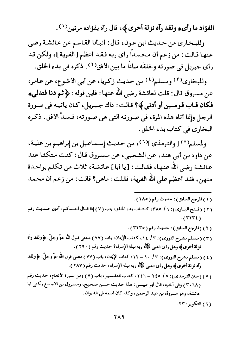 [ (4) ] (مسلم بشرح النووي) : 3/ 14، كتاب الإيمان، باب (77) معنى قول اللَّه عزّ وجلّ: وَلَقَدْ رَآهُ نَزْلَةً أُخْرى وهل رأى النبي صلّى اللَّه عليه وسلّم ربه ليلة الإسراء؟ حديث رقم (290) .