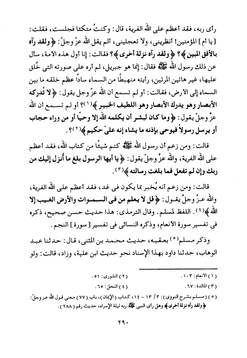 وَلَقَدْ رَآهُ نَزْلَةً أُخْرى وهل رأى النبي صلّى اللَّه عليه وسلّم ربه ليلة الإسراء، حديث رقم (288) .