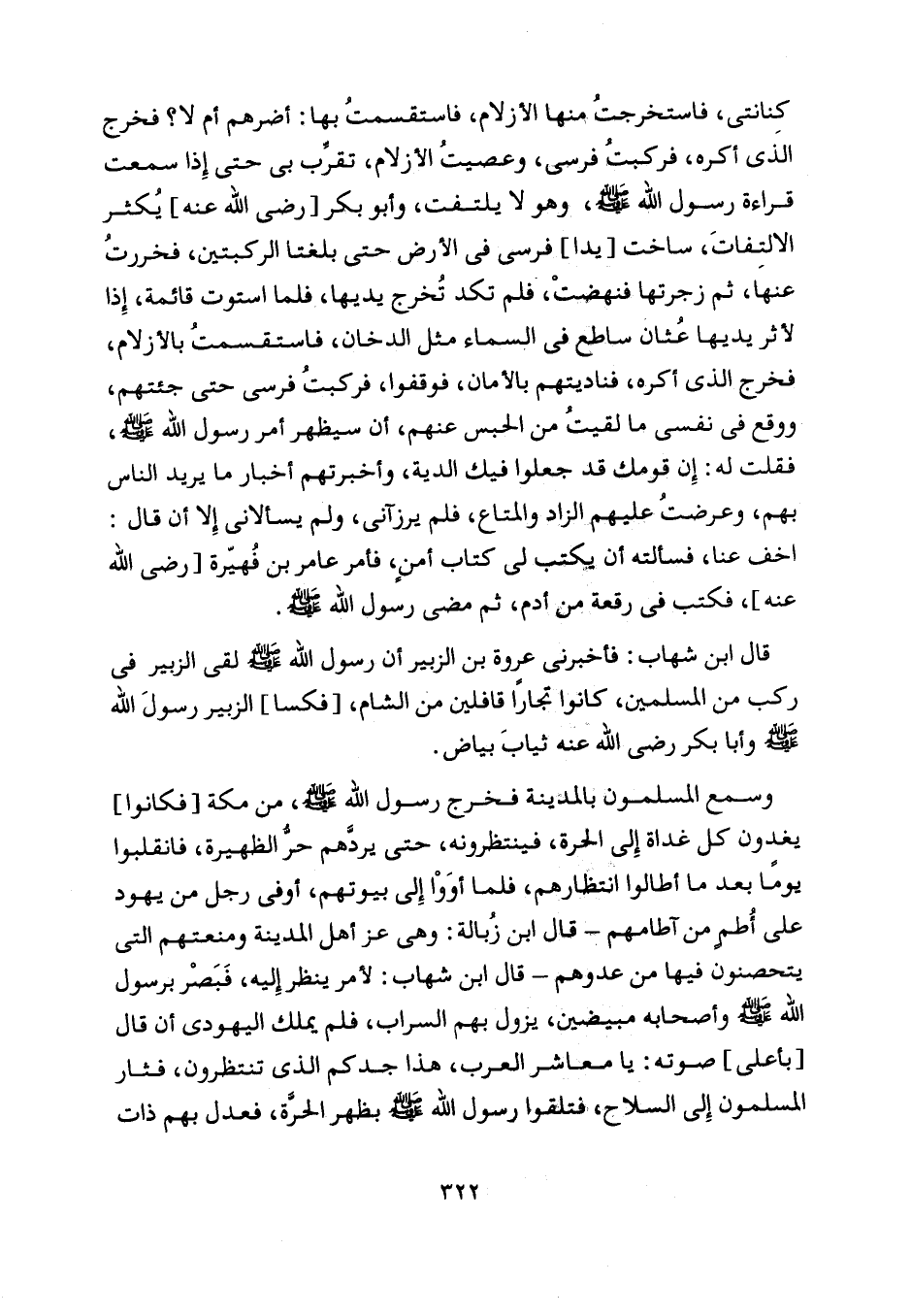 قال ابن شهاب: فأخبرني عروة بن الزبير أن رسول اللَّه صلّى اللَّه عليه وسلّم لقي الزبير في ركب من المسلمين، كانوا تجارا قافلين من الشام، [فكسا] الزبير رسول اللَّه صلّى اللَّه عليه وسلّم وأبا بكر رضى اللَّه عنه ثياب بياض.