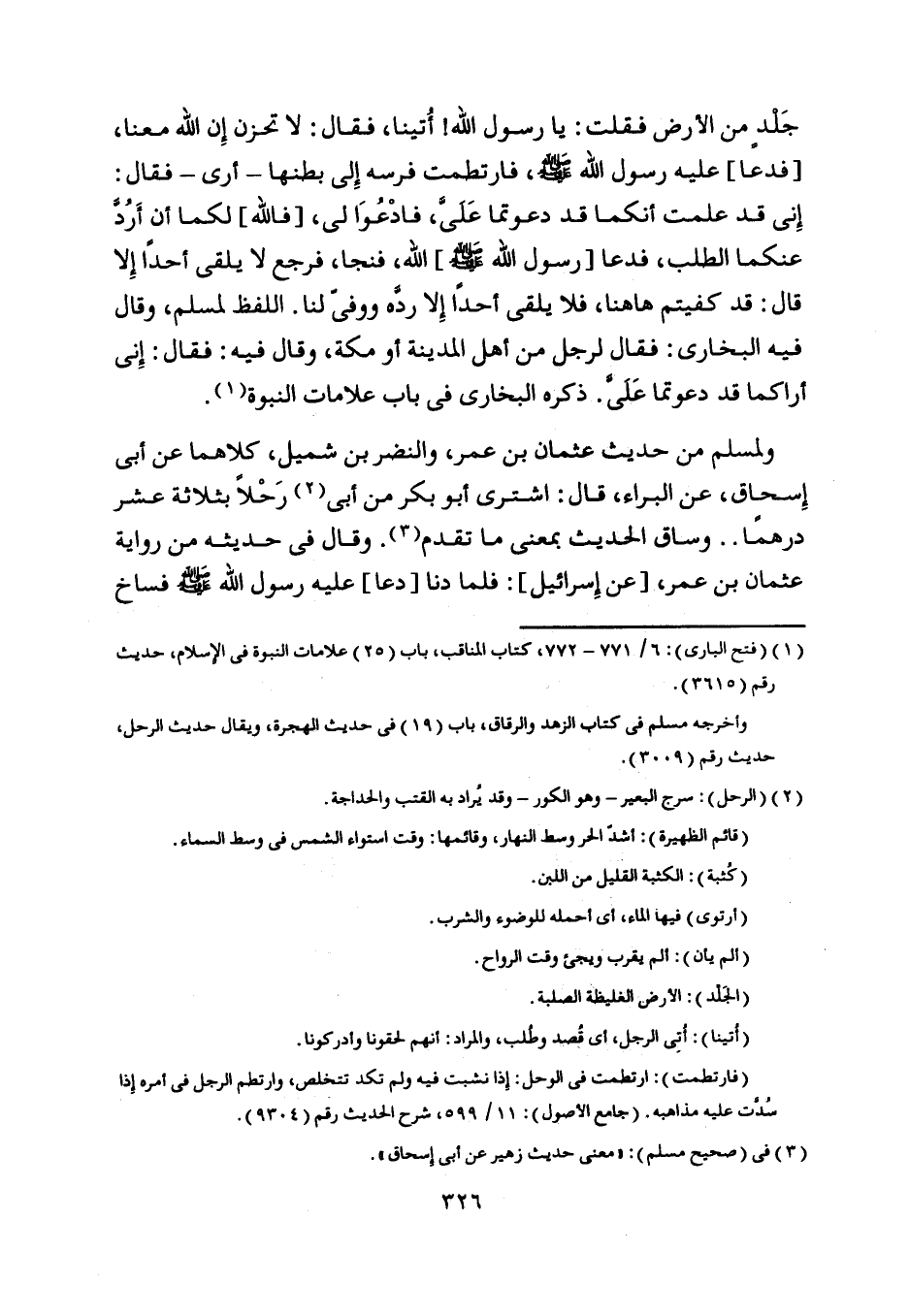 [ (1) ] (فتح الباري) : 6/ 771- 772، كتاب المناقب، باب (25) علامات النبوة في الإسلام، حديث رقم (3615) .