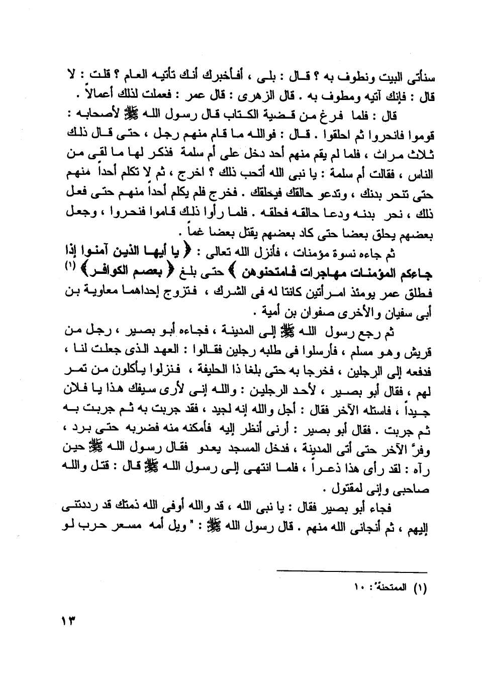 سنأتي البيت ونطوف به؟ قال: بلى، أفأخبرك أنك تأتيه العام؟ قلت: لا قال: فإنك آتيه ومطوف به. قال الزهري: قال عمر: فعملت لذلك أعمالا.