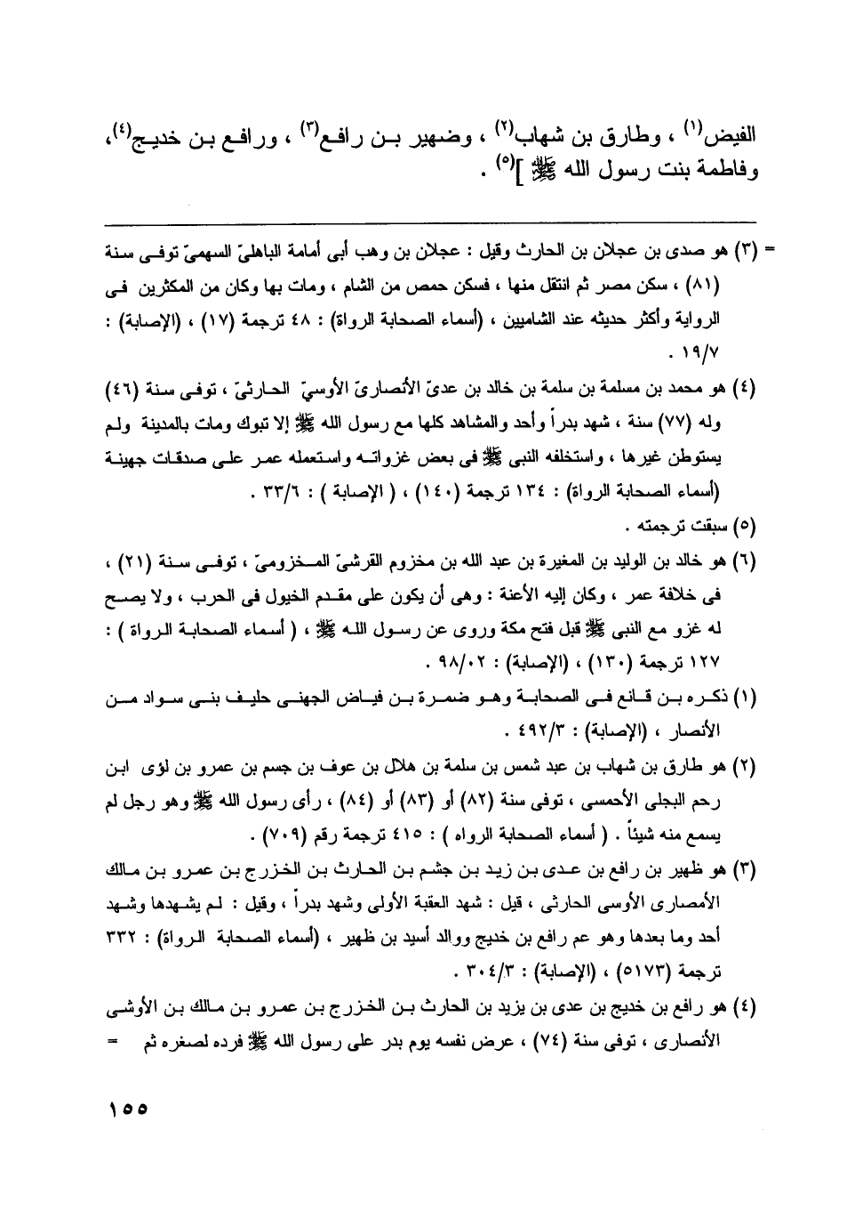 بن مسلمة [ (1) ] ، وخباب بن الأرت [ (2) ] ، وخالد بن الوليد [ (3) ] ، وضمرة بن الفيض [ (4) ] ، وطارق بن شهاب [ (5) ] ، وضهير بن رافع [ (6) ] ، ورافع بن خديج [ (7) ] ، وفاطمة بنت رسول اللَّه صلّى اللَّه عليه وسلّم] [ (8) ] .