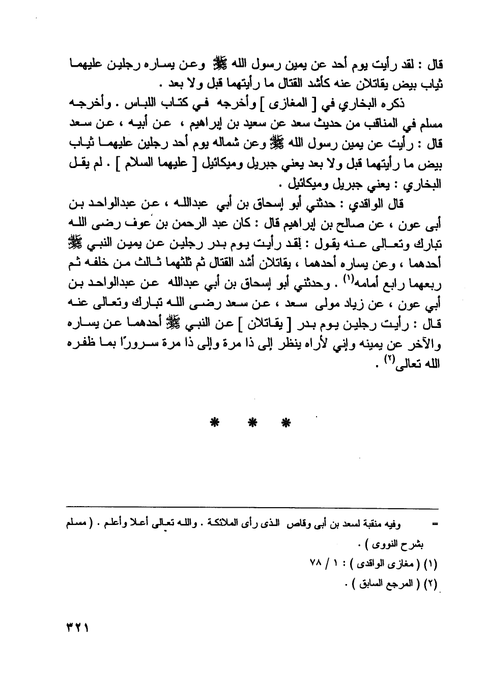 [ () ] وفيه منقبة لسعد بن أبى وقاص الّذي رأى الملائكة. واللَّه تعالى أعلا وأعلم. (مسلم بشرح النووي) .