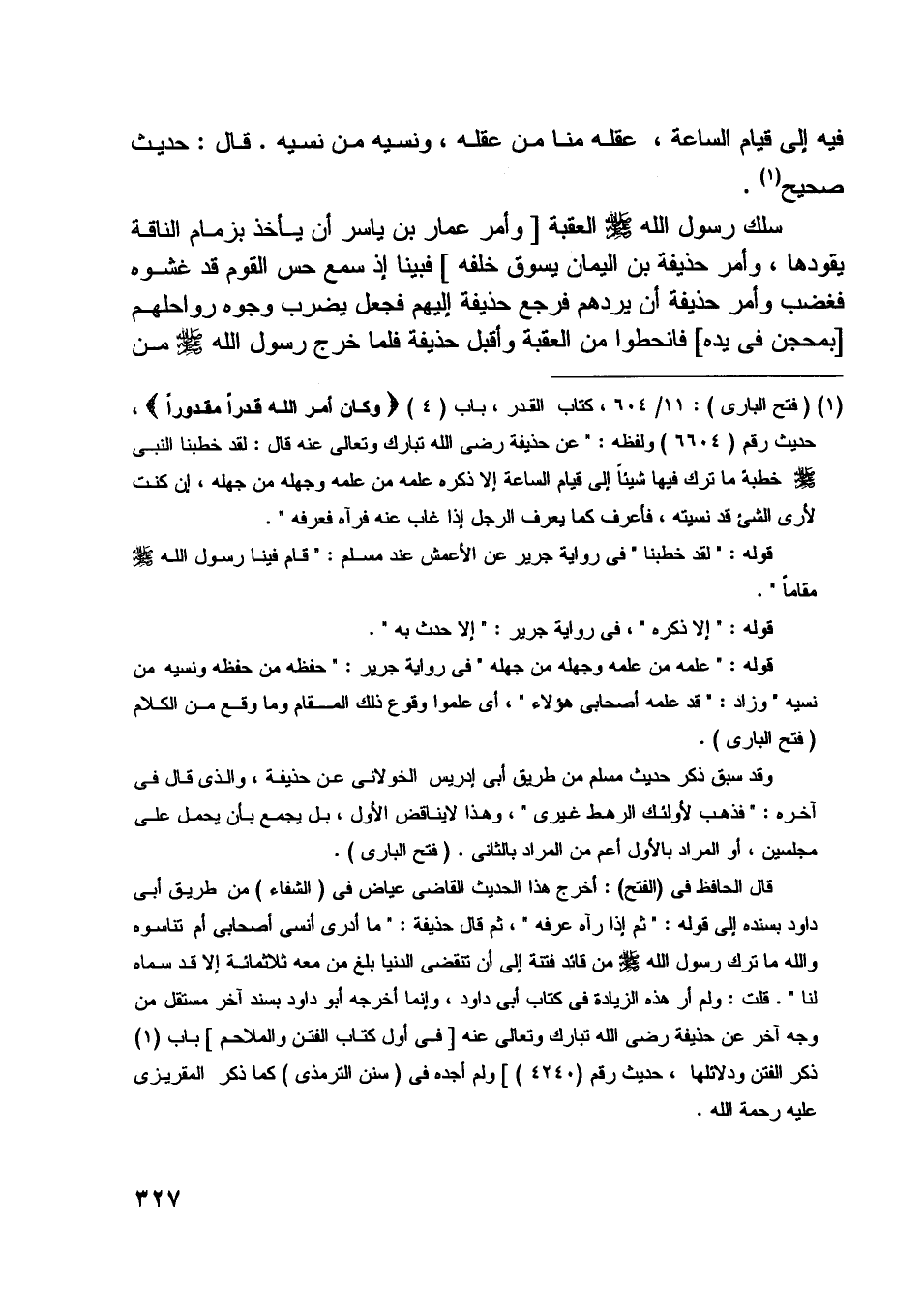 [ (1) ] (فتح الباري) : 11/ 604، كتاب القدر، باب (4) وَكانَ أَمْرُ اللَّهِ قَدَراً مَقْدُوراً، حديث رقم (6604) ولفظه: «عن حذيفة رضى اللَّه تبارك وتعالى عنه قال: لقد خطبنا النبي صلّى اللَّه عليه وسلّم خطبة ما ترك فيها شيئا إلى قيام الساعة إلا ذكره علمه من علمه وجهله من جهله، إن كنت لأرى الشيء قد نسيته، فأعرف كما يعرف الرجل إذا غاب عنه فرآه فعرفه» .